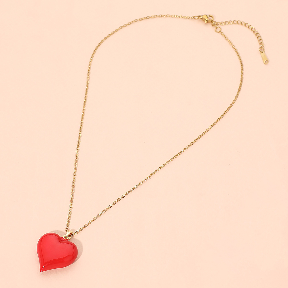 Details • Necklace Size : 15.5" + 2.25" L • Pendant Size : 0.8" X 1.2" • This glossy heart pendant necklace features a smooth, high-shine heart charm suspended from a delicate chain for a clean, modern look. Perfect for everyday wear or layering, it offers timeless appeal that suits gifting, boutique assortments, and romantic-inspired fashion collections. • Stainless Steel