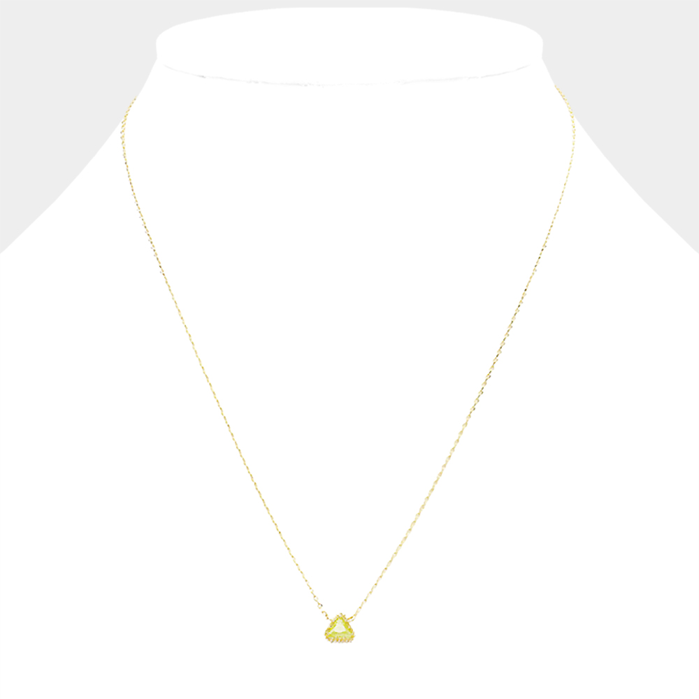 Gold Dipped Cubic Zirconia Triangle Pendant Necklace