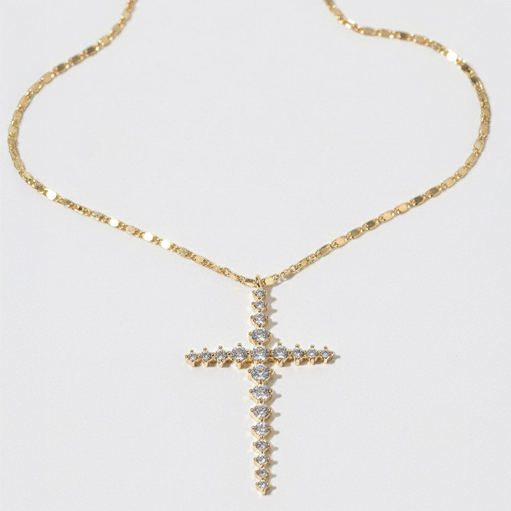 • This sparkling cross pendant necklace features a refined silhouette with shimmering stone accents that catch the light beautifully. Designed for everyday wear or special moments, it layers effortlessly or stands alone as a meaningful, elegant statement piece perfect for gifting and boutique collections.