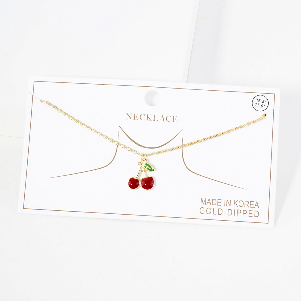 Gold Dipped Enamel Cherry Pendant Necklace Gold Dipped Enamel Cherry Pendant Necklace Gold Dipped Enamel Cherry Pendant Necklace