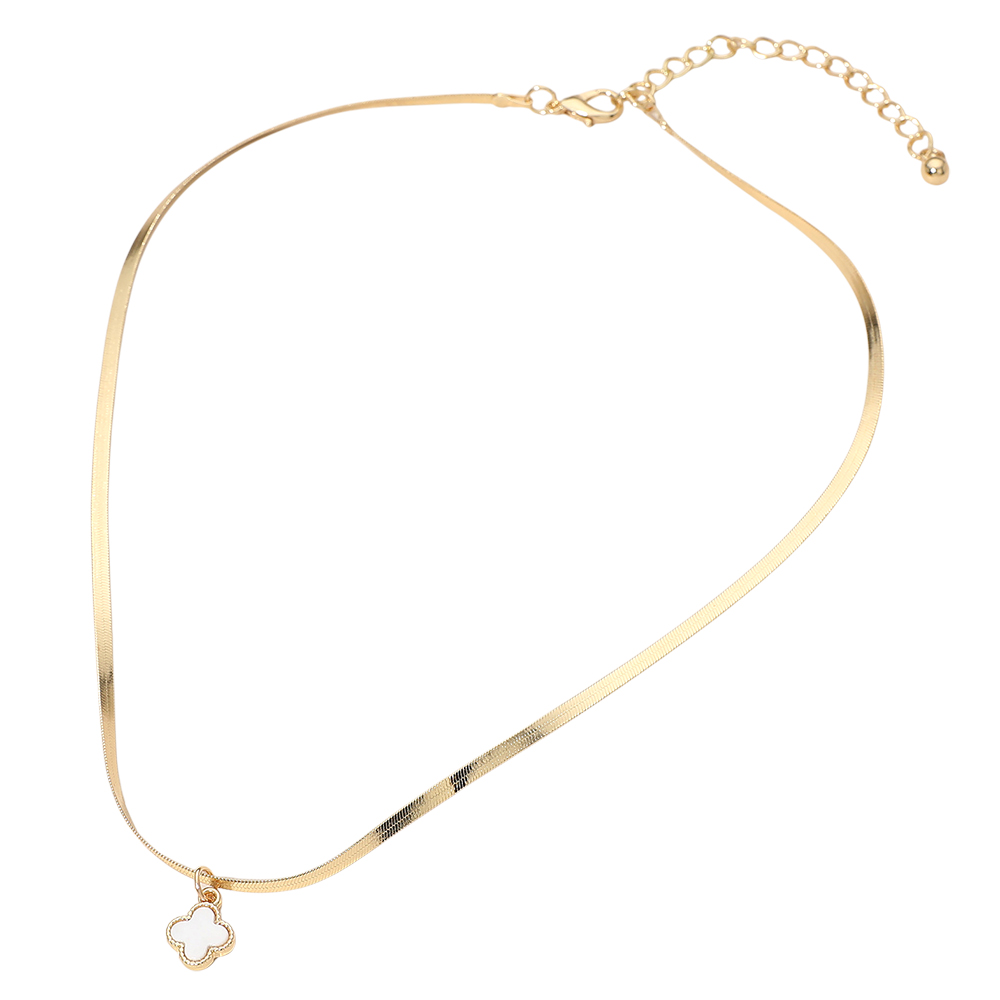 Gold Dipped Quatrefoil Pendant Herringbone Chain Necklace
