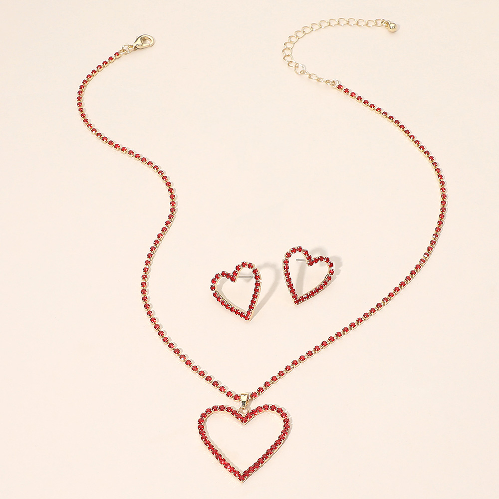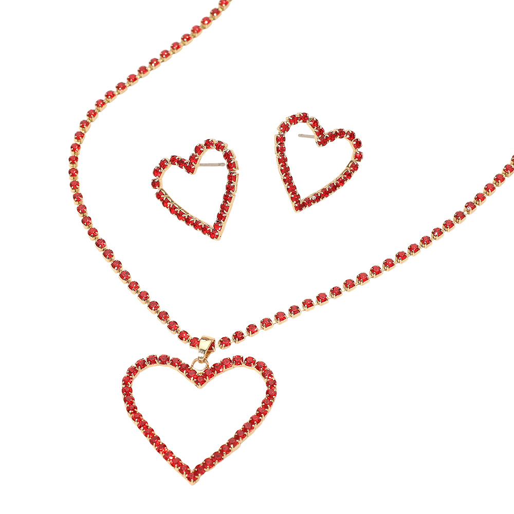 • This elegant jewelry set features a heart shaped pendant necklace paired with matching heart stud earrings for a coordinated, timeless look. Designed to add sparkle and charm to everyday outfits or special occasions, it’s perfect for gifting, Valentine themed collections, or romantic boutique displays. Ideal for layering or wearing as a complete matching set.