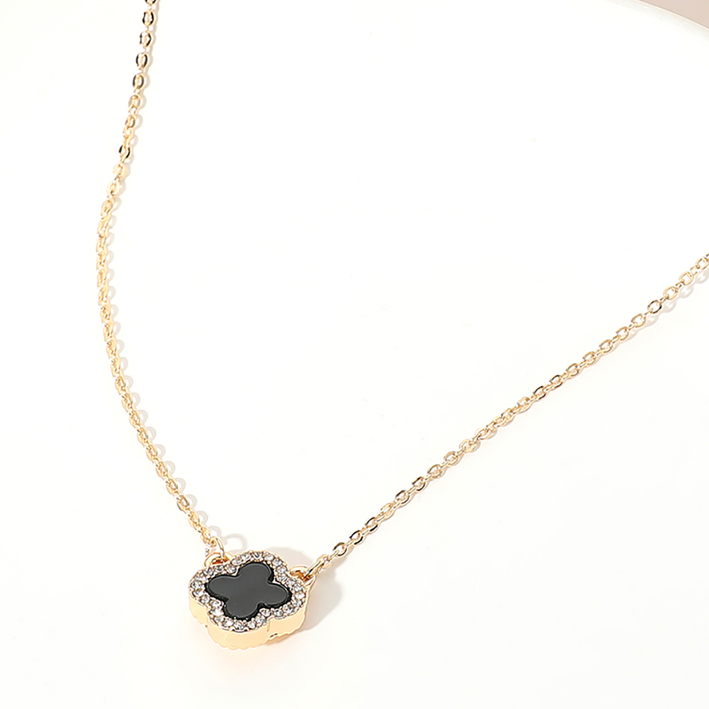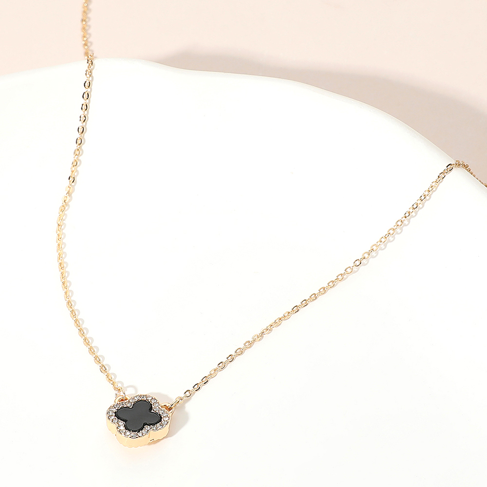 • This dainty quatrefoil charm pendant necklace showcases a single elegant motif framed by a shimmering border for a refined touch. Its minimalist design and adjustable chain make it perfect for layering or wearing solo, adding a hint of sophistication to both casual and dressy ensembles.