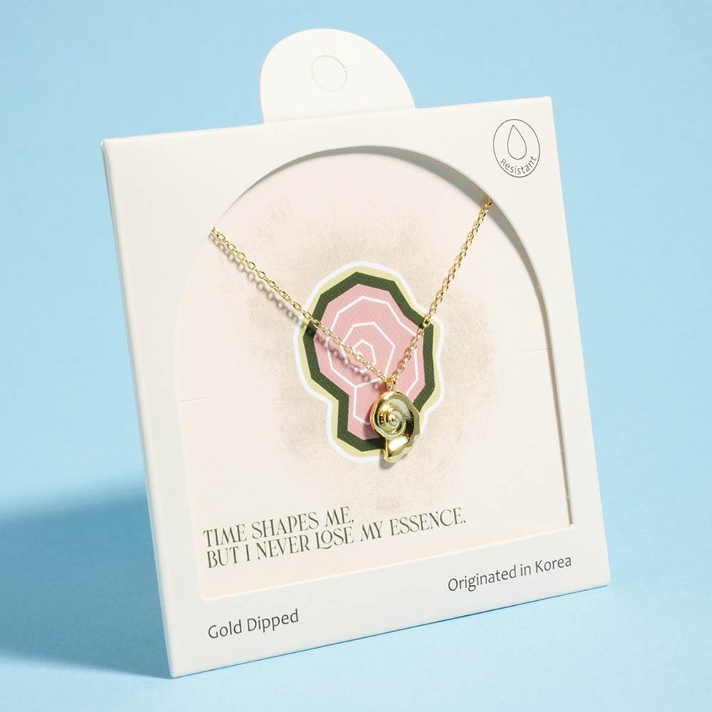 Details • Necklace Size : 16" + 2" L • Pendant Size : 0.4" X 0.6" • Elegant spiral shell pendant necklace symbolizing time, growth, and individuality. Designed for everyday styling and gifting, this delicate necklace pairs easily with casual and elevated looks, making it a versatile addition to boutique jewelry collections, seasonal assortments, and curated displays. • Gold Dipped • Hypoallergenic • Made In Korea