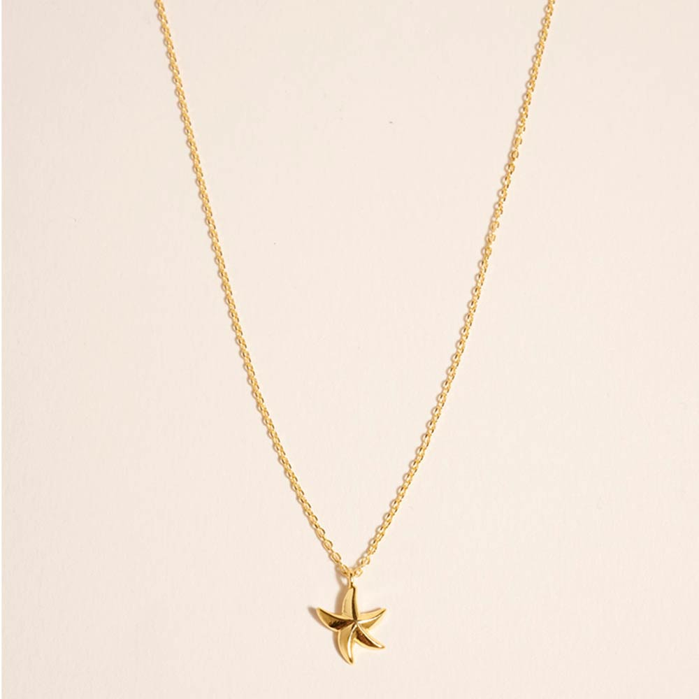 Details • Necklace Size : 16" + 2" L • Pendant Size : 0.4" X 0.5" • Playful starfish pendant necklace featuring a charming ocean-inspired design with a delicate silhouette. A perfect accessory for summer styling, beach-themed collections, gifts, and resort boutiques. Lightweight and easy to wear for everyday outfits, vacations, and seasonal displays. • Gold Dipped • Hypoallergenic • Made In Korea