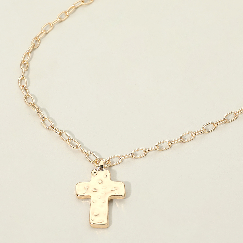 • Classic chain necklace featuring a textured cross pendant designed for everyday styling or meaningful gifting. The simple silhouette layers effortlessly with other necklaces or stands alone as a subtle statement, making it suitable for casual wear, work looks, or special occasions.