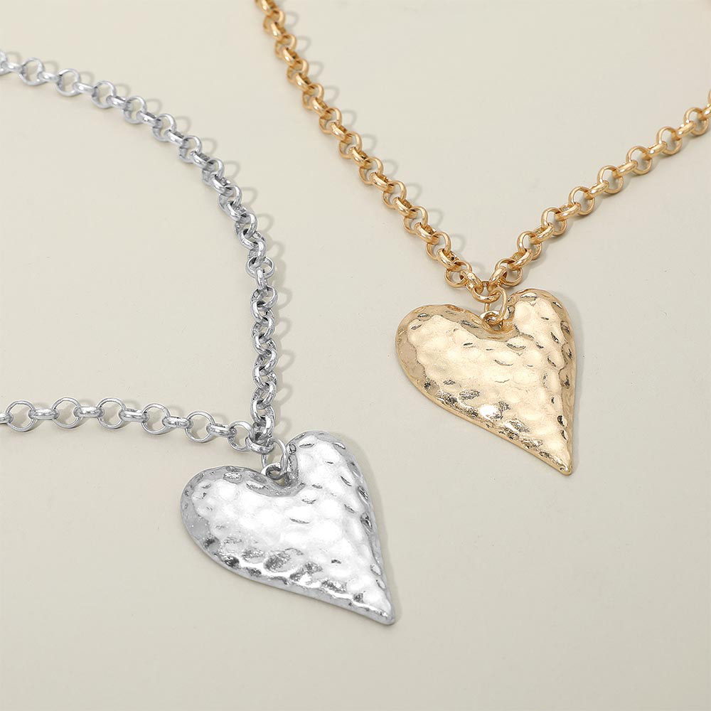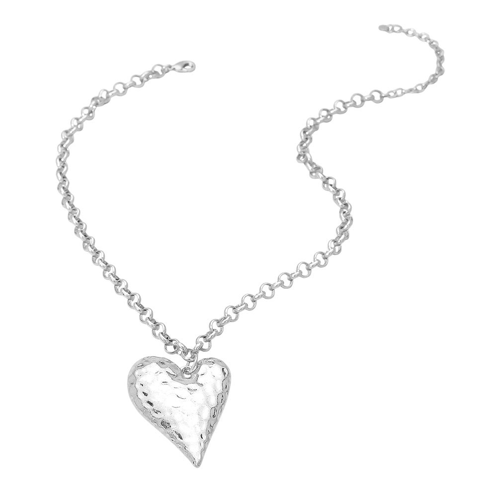 • Elevate your look with this hammered heart pendant chain necklace featuring a bold link design and sculpted heart charm. A modern statement accessory perfect for everyday wear, gifting, or styling with layered jewelry for added impact.