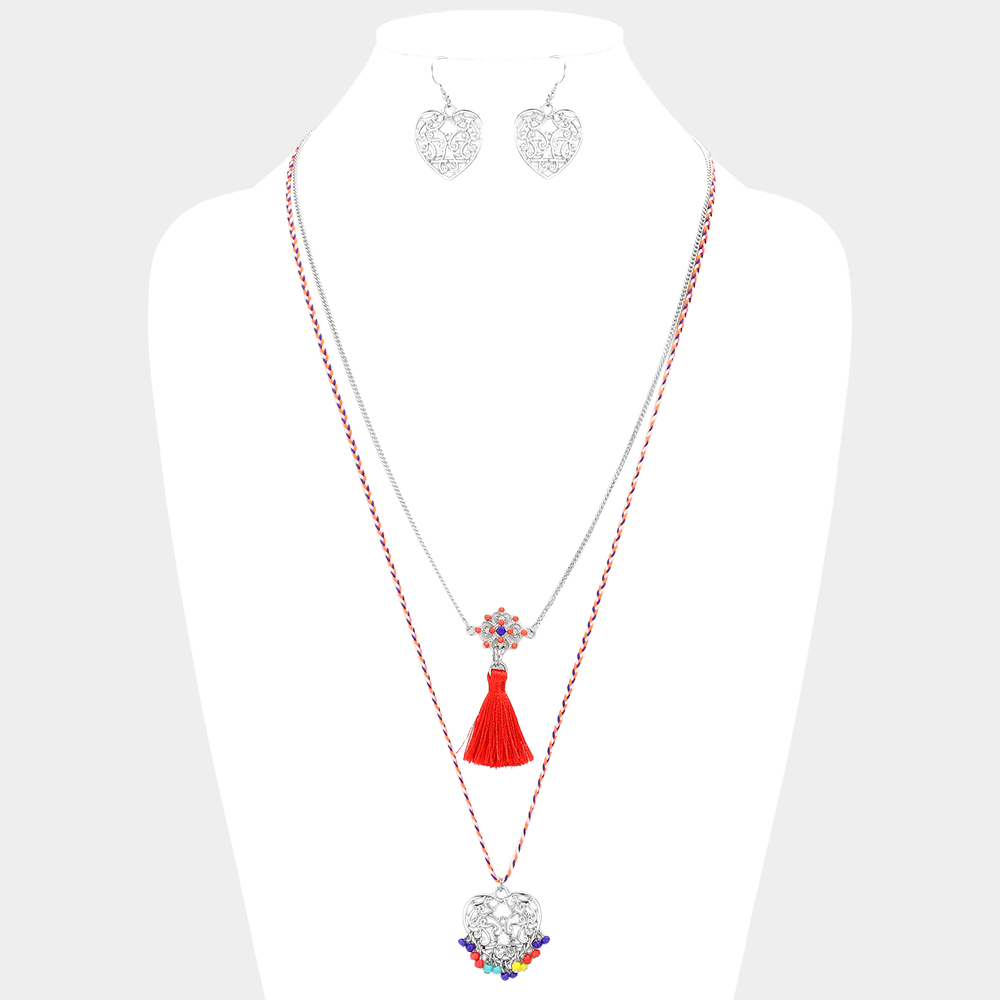 Heart Pendant Necklace With Tassel