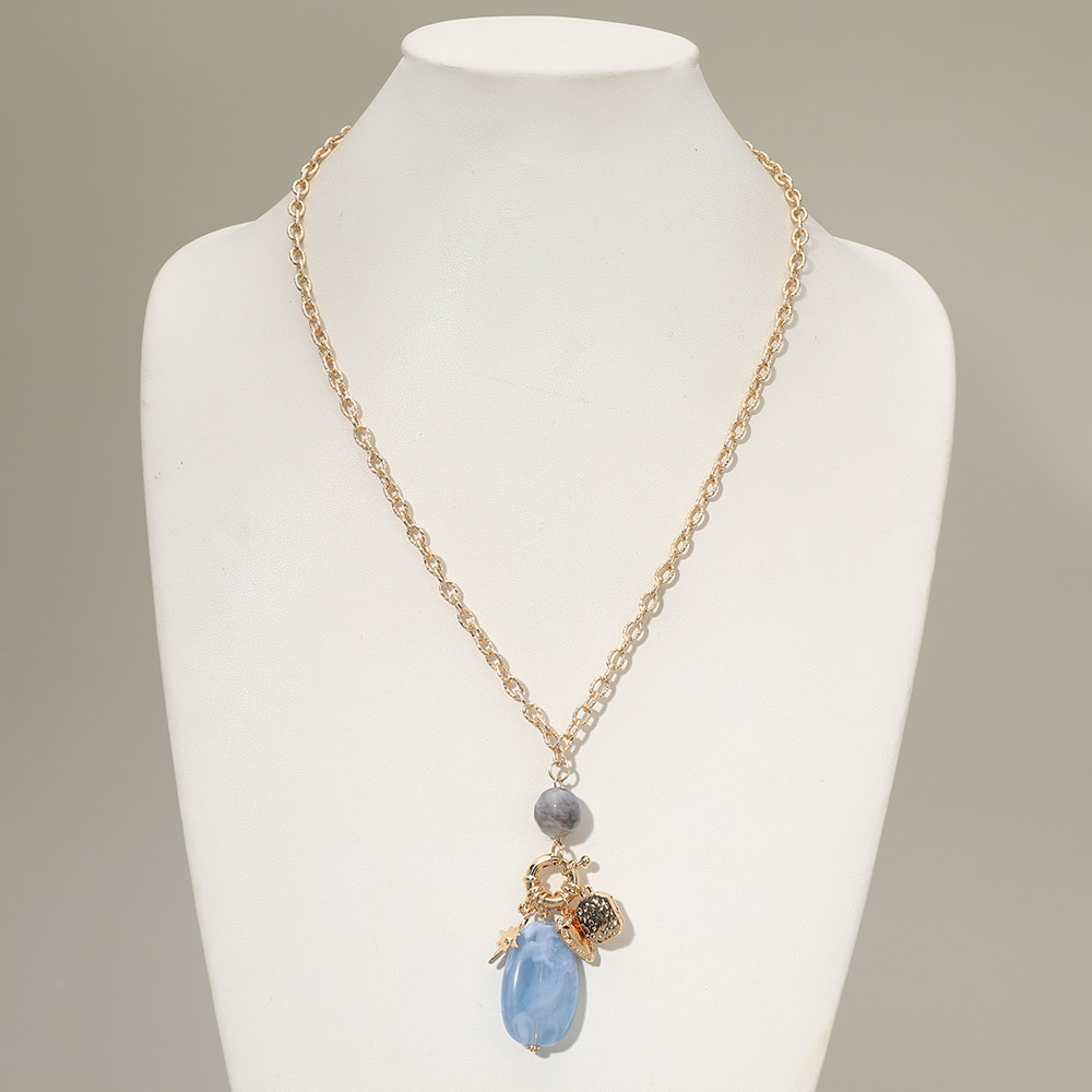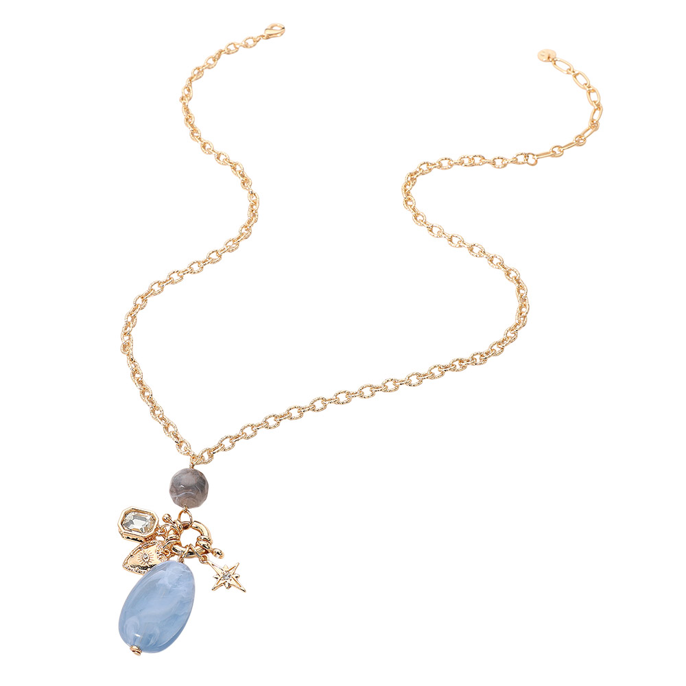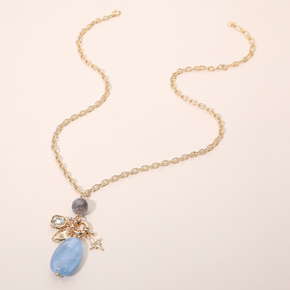 Marbled Resin Stone Evil Eye Heart Star Charm Pendant Necklace