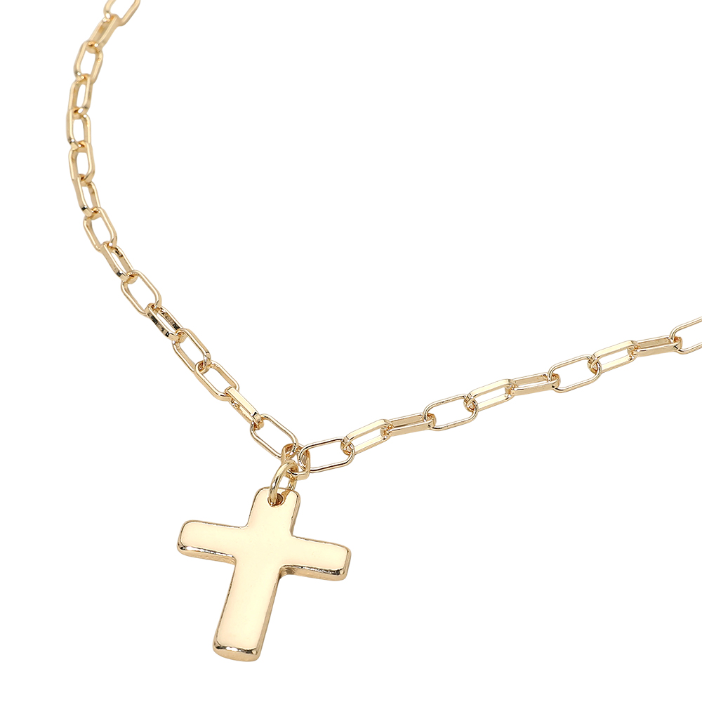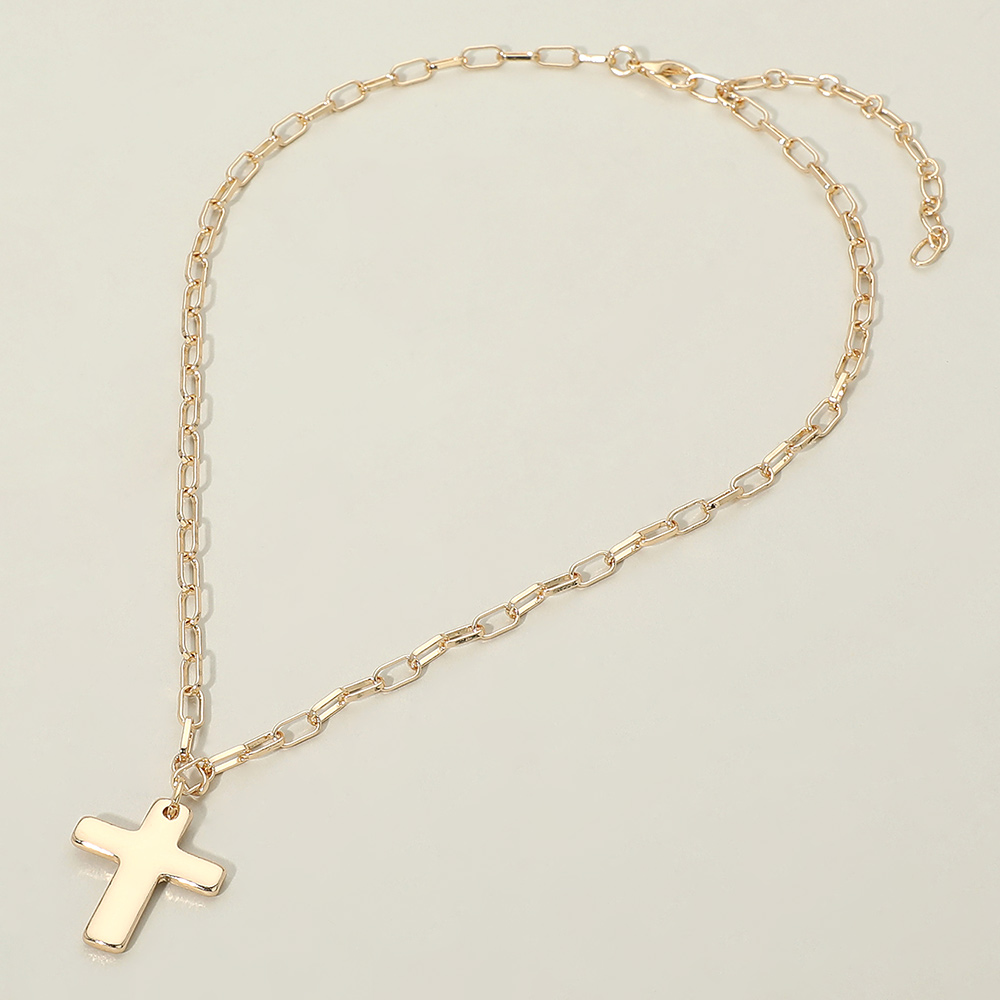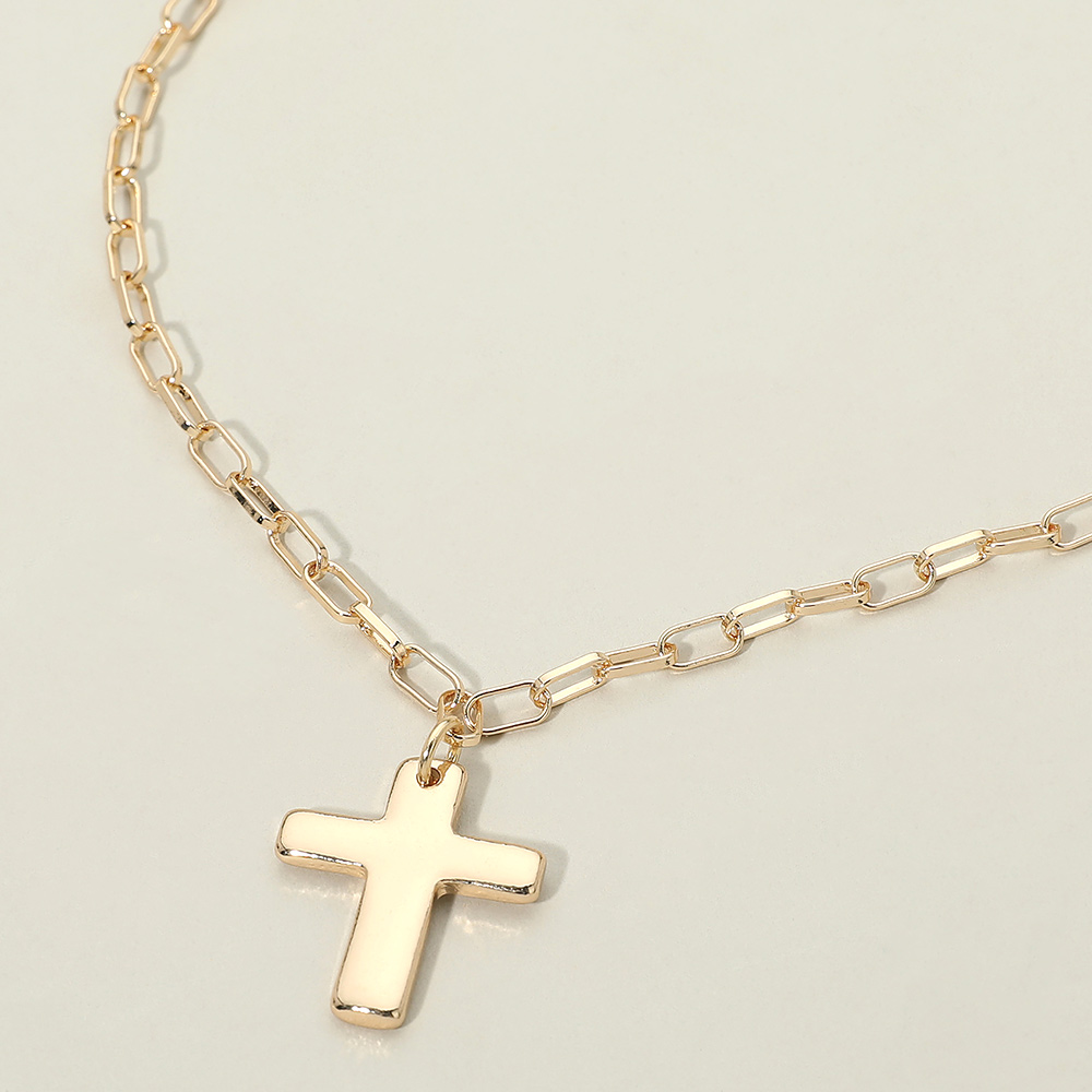 Metal Cross Charm Pendant Paperclip Chain Necklace