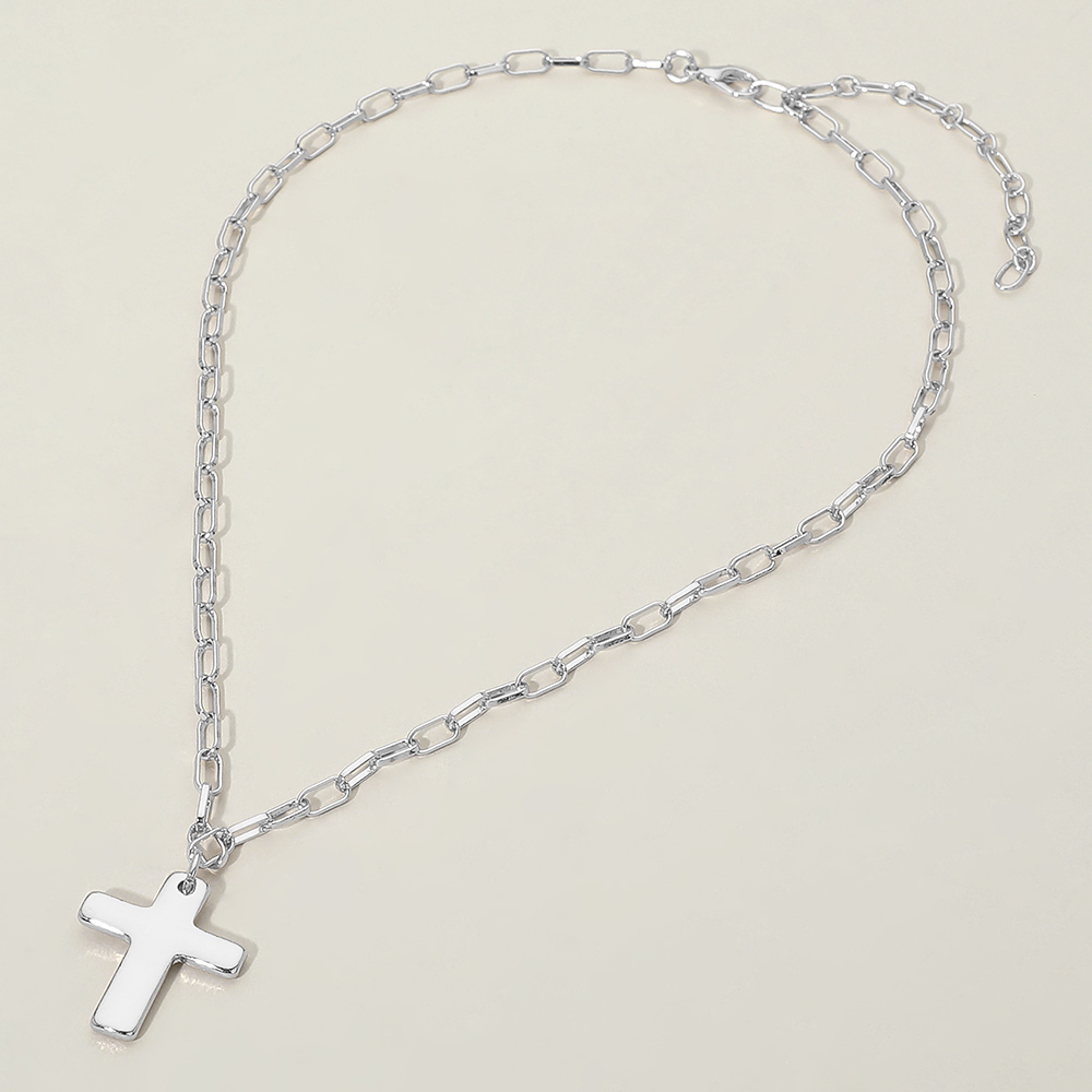 Metal Cross Charm Pendant Paperclip Chain Necklace