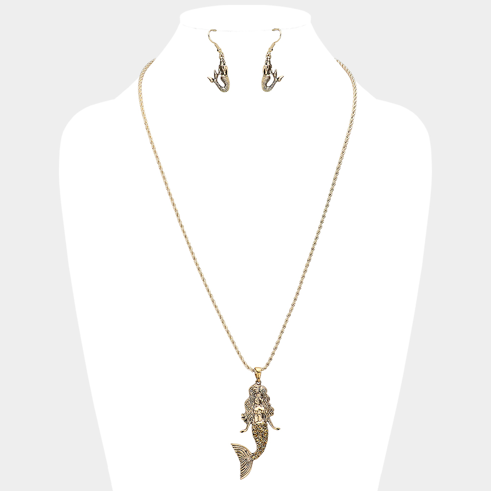 3PCS - Rhinestone Embellished Metal Mermaid Charm Stretch Bracelets
