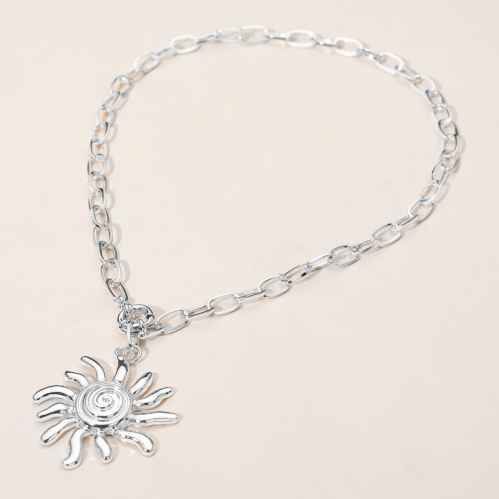 Metal Spiral Sun Pendant Paperclip Chain Necklace