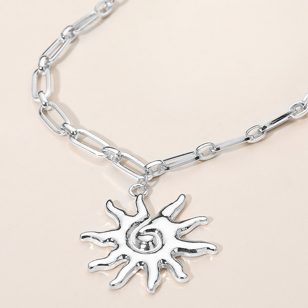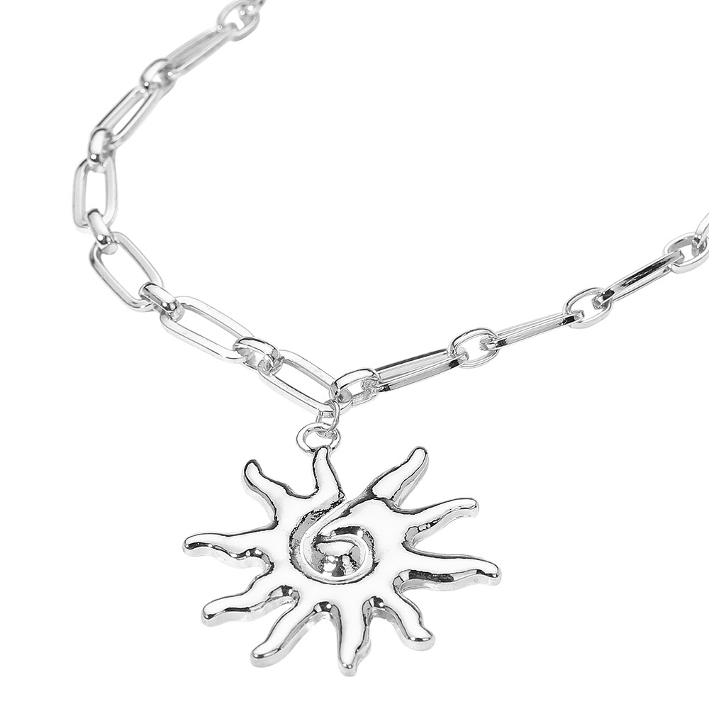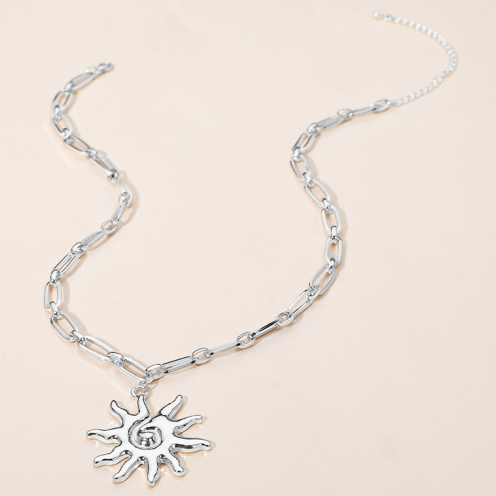 Metal Sunburst Pendant Paperclip Chain Necklace