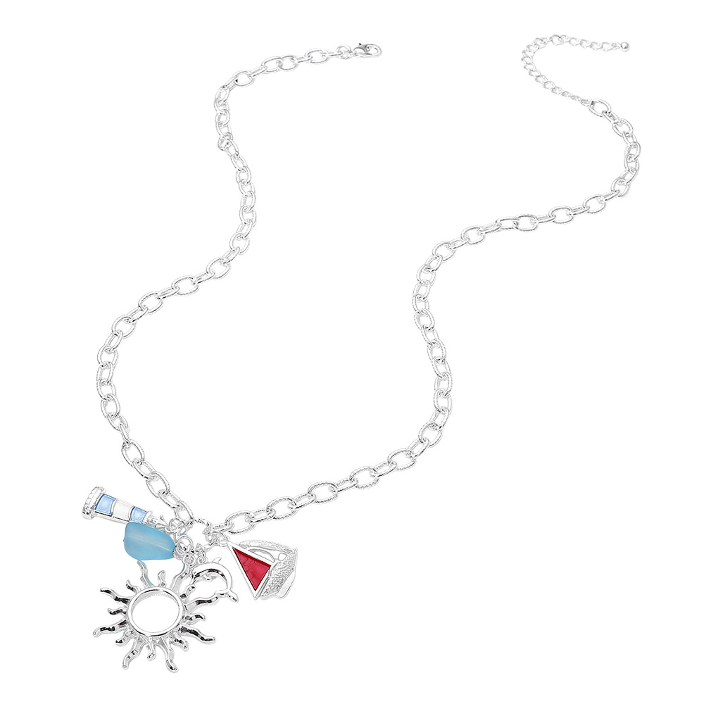 • Nautical-inspired pendant necklace featuring playful seaside charms that add movement and character to any outfit. Designed for coastal, vacation, and everyday styling, this statement necklace appeals to customers who love ocean themes, travel vibes, and layered charm accessories for casual or resort looks.
