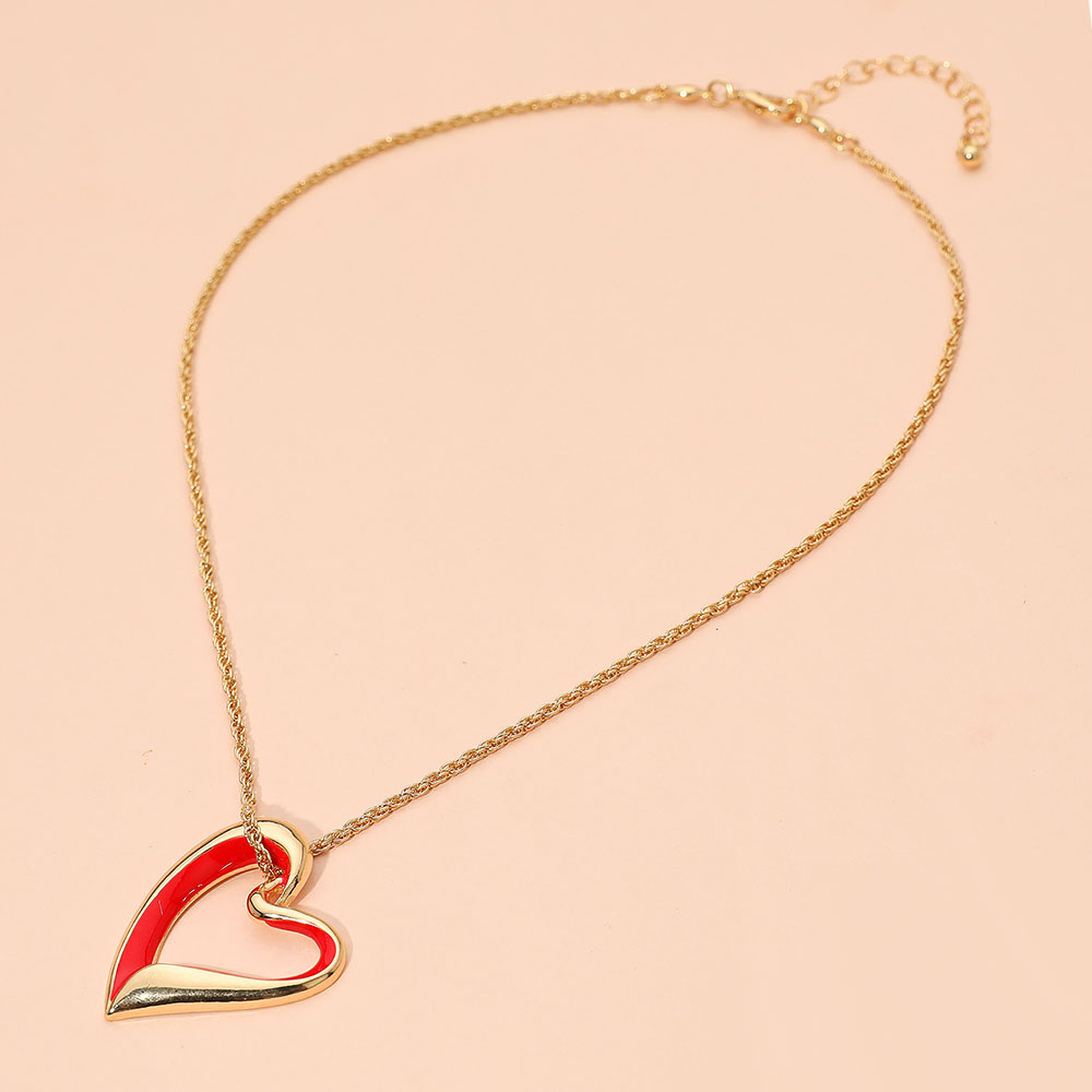 Open Enamel Heart Pendant Rope Chain Necklace Open Enamel Heart Pendant Rope Chain Necklace Open Enamel Heart Pendant Rope Chain Necklace