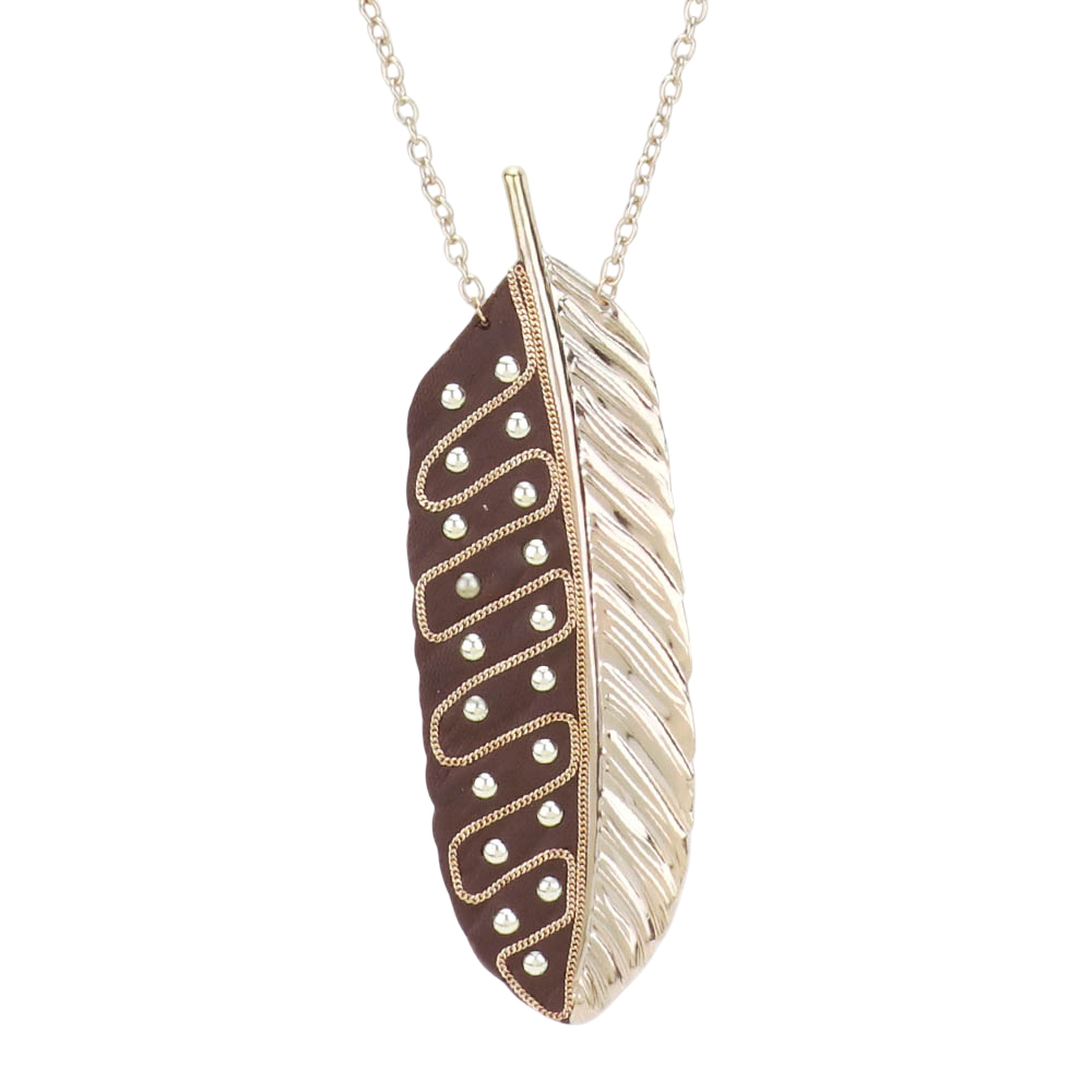 Oversized Leaf Metal Stud Pendant Link Long Necklace