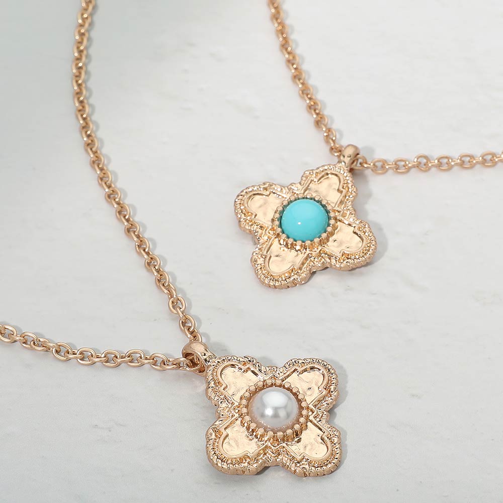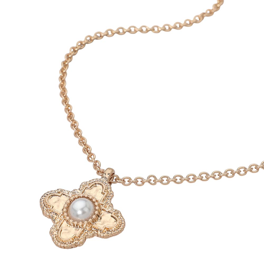 Details • Necklace Size : 16" + 3.25" L • Pendant Size : 1.25" X 1.4" • Delicate pendant necklace featuring a floral-inspired charm with a smooth pearl-style center and intricate detailing. Designed on a fine chain for a graceful, lightweight feel, this necklace layers effortlessly or stands beautifully on its own. A timeless accessory suited for everyday styling, gifting, or special occasions, adding soft elegance and charm to any jewelry collection. • Lead and Nickel Compliant