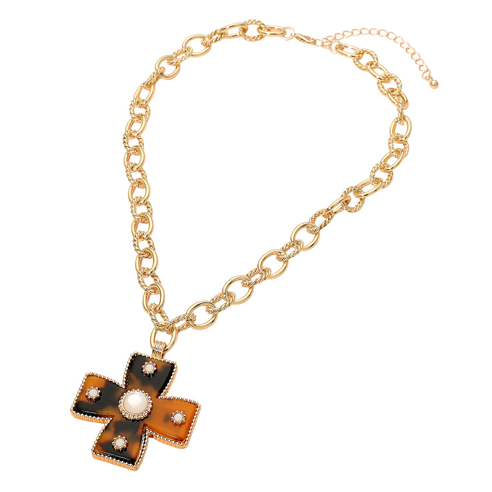 Details • Necklace Size : 17" + 3" L • Pendant Size : 1.75" X 2" • Statement chain necklace featuring a bold cross pendant with textured detailing and accent elements. Designed to stand out, this fashion-forward piece adds symbolic style and modern edge to everyday outfits or layered looks, making it a versatile choice for trend-driven accessory collections. • Lead and Nickel Compliant