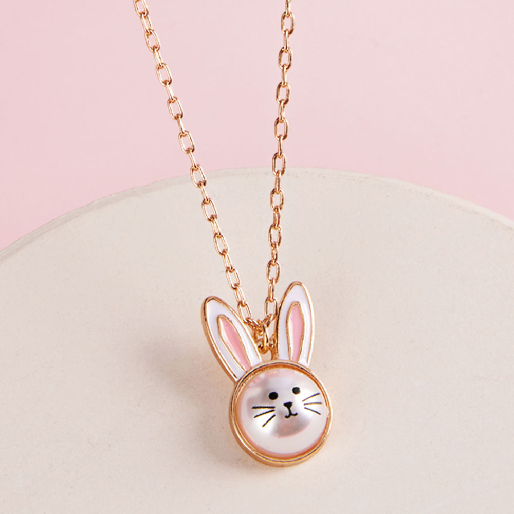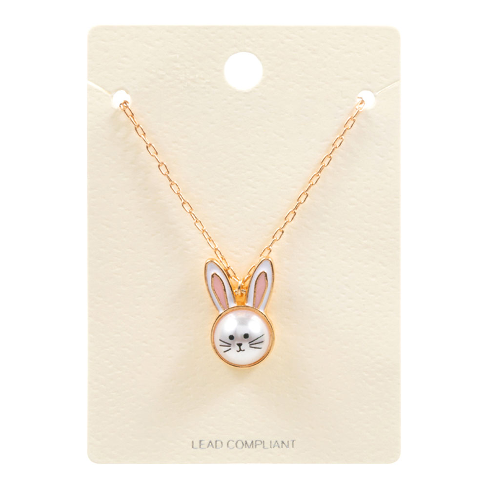 Details • Necklace Size : 16" + 3.5" L • Pendant Size : 0.5" X 0.75" • Cute bunny face pendant necklace designed for seasonal and novelty jewelry collections. A playful accent ideal for Easter assortments, spring gifting, and boutique displays. Lightweight and easy to style, this charming necklace adds a whimsical touch to everyday looks, kids collections, and holiday-themed accessories. • Lead and Nickel Compliant