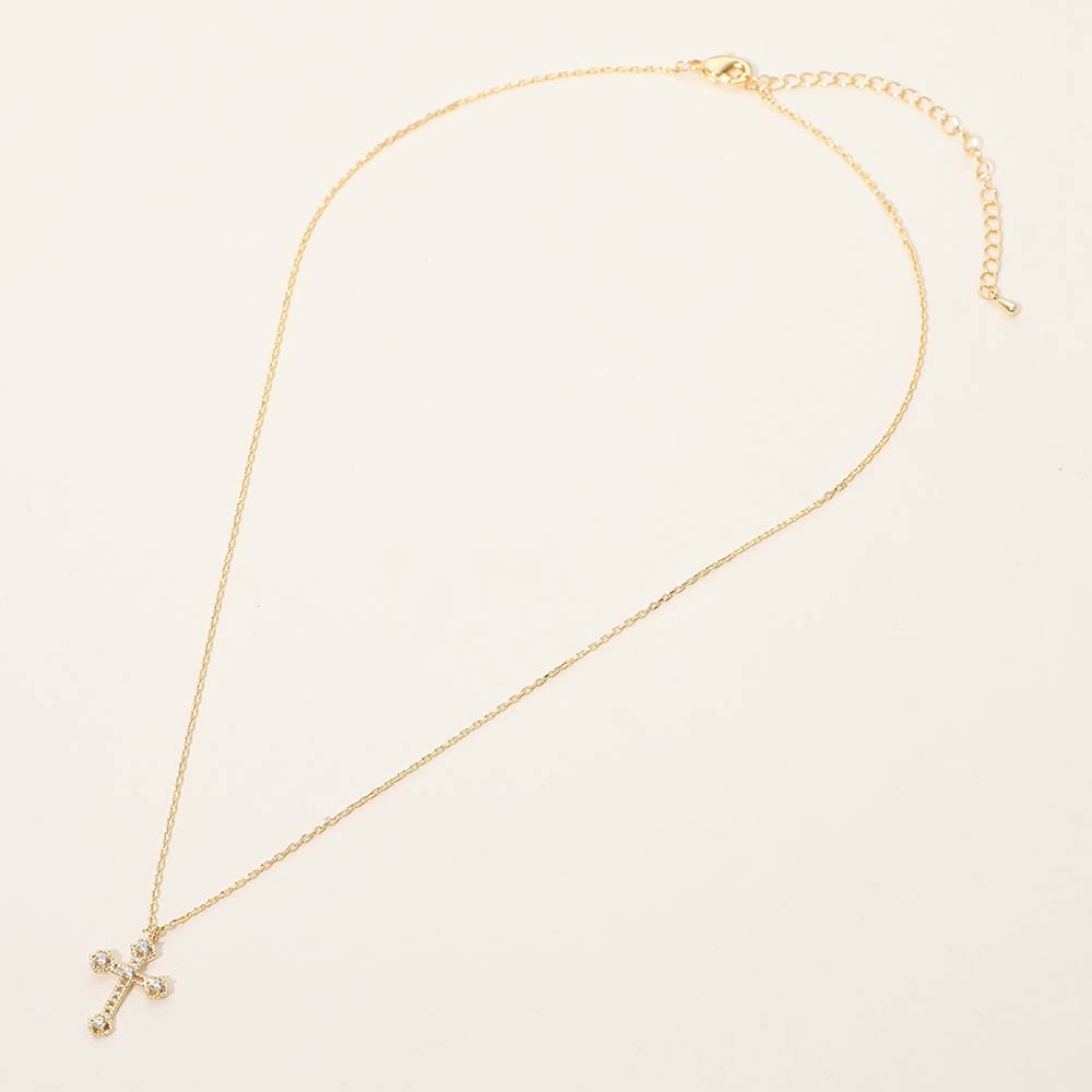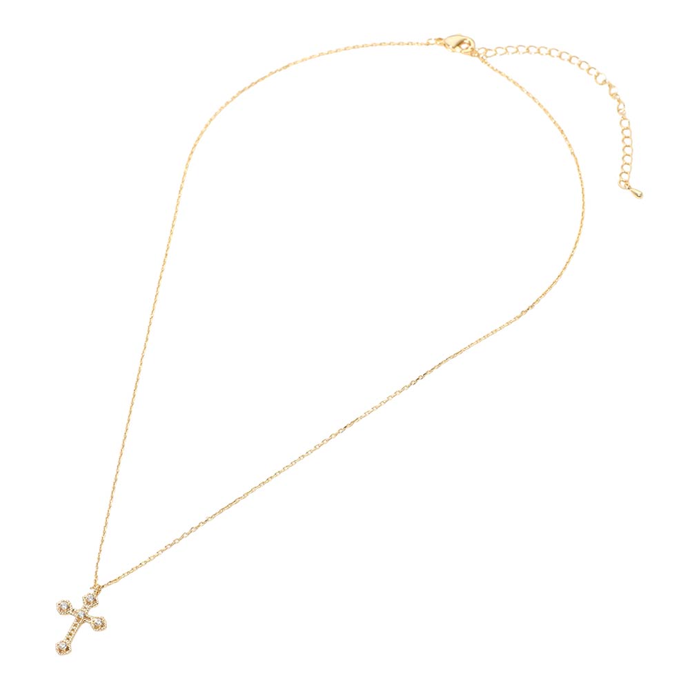 • This elegant cross pendant necklace features sparkling accent details that add refined shine to a classic silhouette. Designed for everyday wear, it offers a meaningful yet versatile look that pairs effortlessly with casual or dressy outfits. Ideal for layering or wearing alone, this timeless necklace makes a thoughtful gift and a strong addition to boutique and faith-inspired jewelry collections.