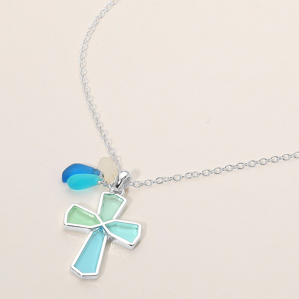 Sea Glass Coastal Cross Pendant Necklace Sea Glass Coastal Cross Pendant Necklace Sea Glass Coastal Cross Pendant Necklace