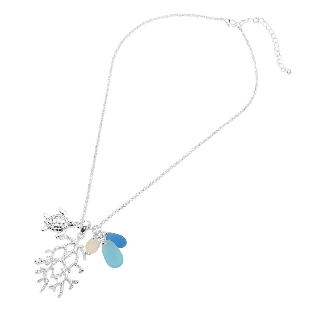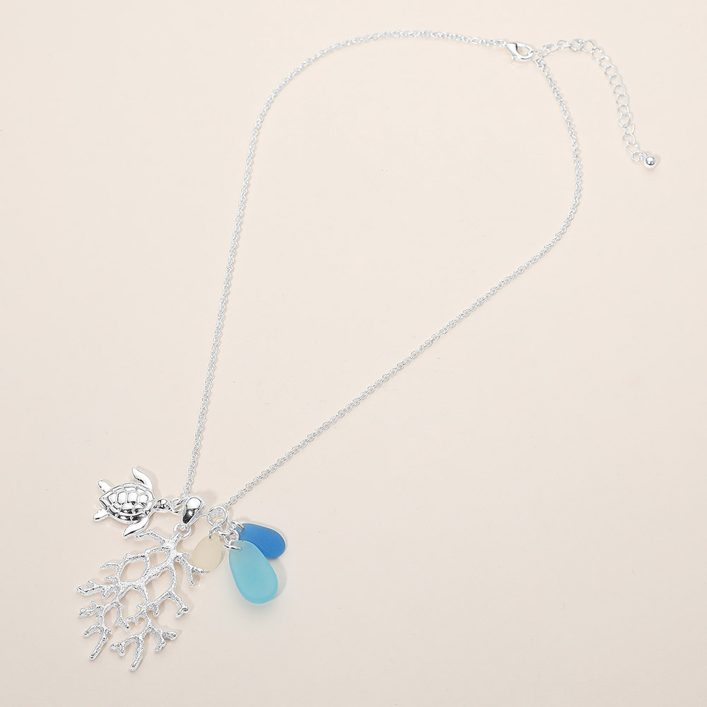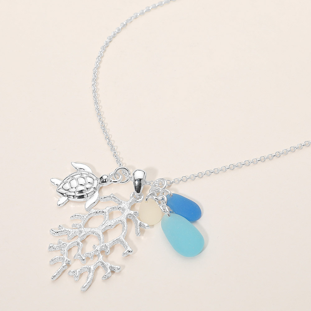 Sea Glass Sea Turtle Coral Charm Pendant Necklace