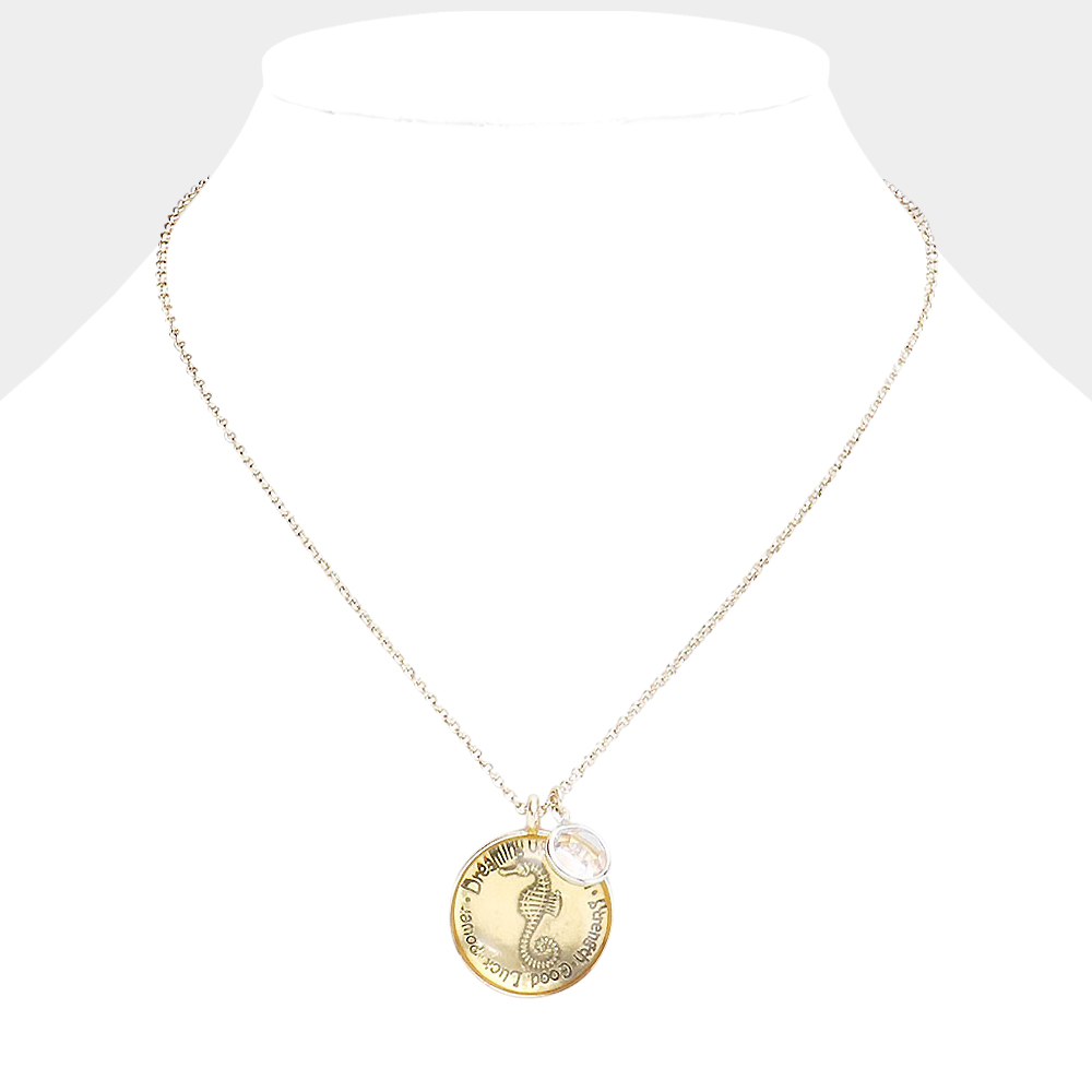 Sea Glass Metal Seahorse Dangle Stretch Ring