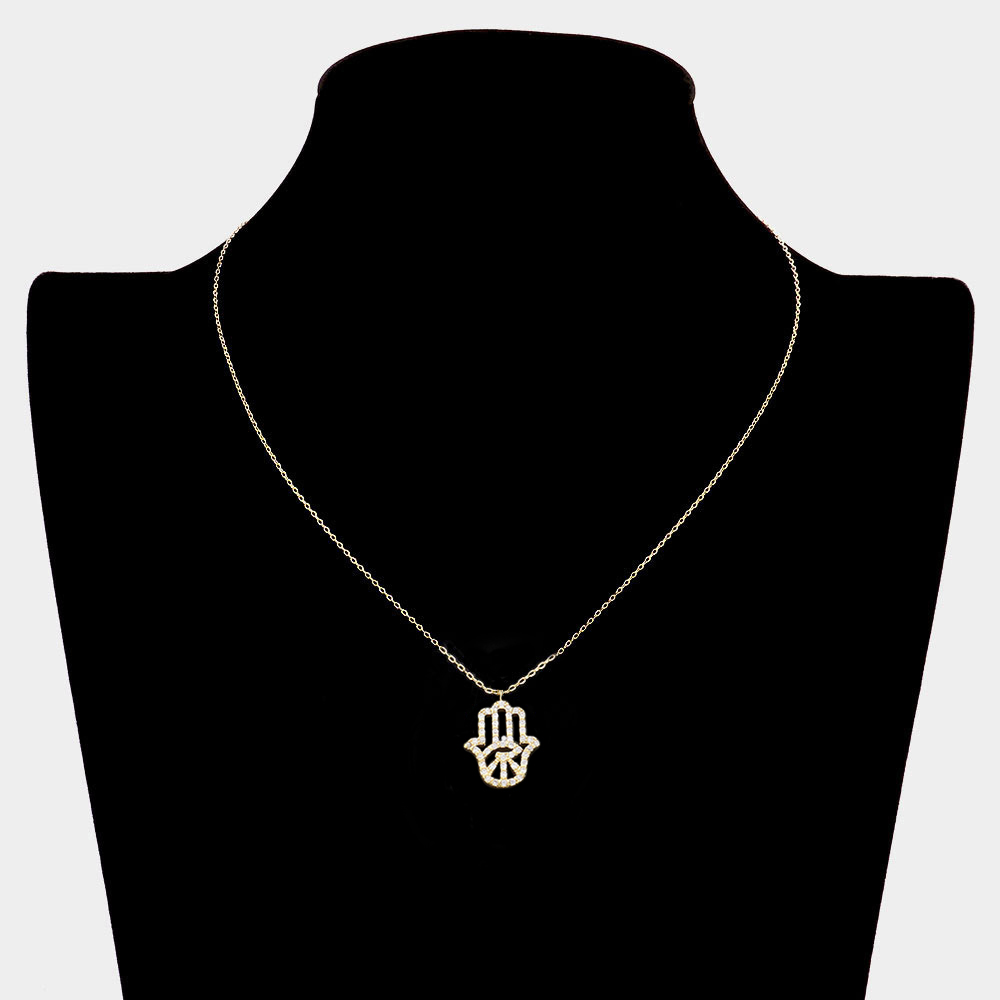 Secret Box _ Sterling Silver Dipped CZ Hamsa Hand Evil Eye Pendant Necklace