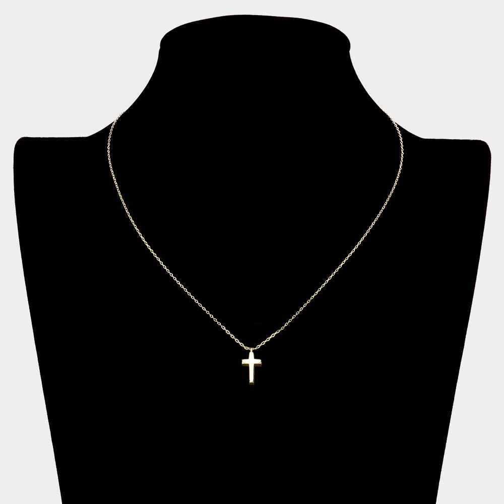 Details • Necklace Size : 16.5" + 2" L • Pendant Size : 0.25" X 0.5" • Elegant minimalist cross pendant necklace designed for everyday wear and effortless layering. A timeless faith-inspired accessory with a clean, modern silhouette that pairs easily with casual or dressy outfits, making it a meaningful and versatile addition to jewelry collections. • Lead and Nickel Compliant • Made In Korea • Gold Dipped