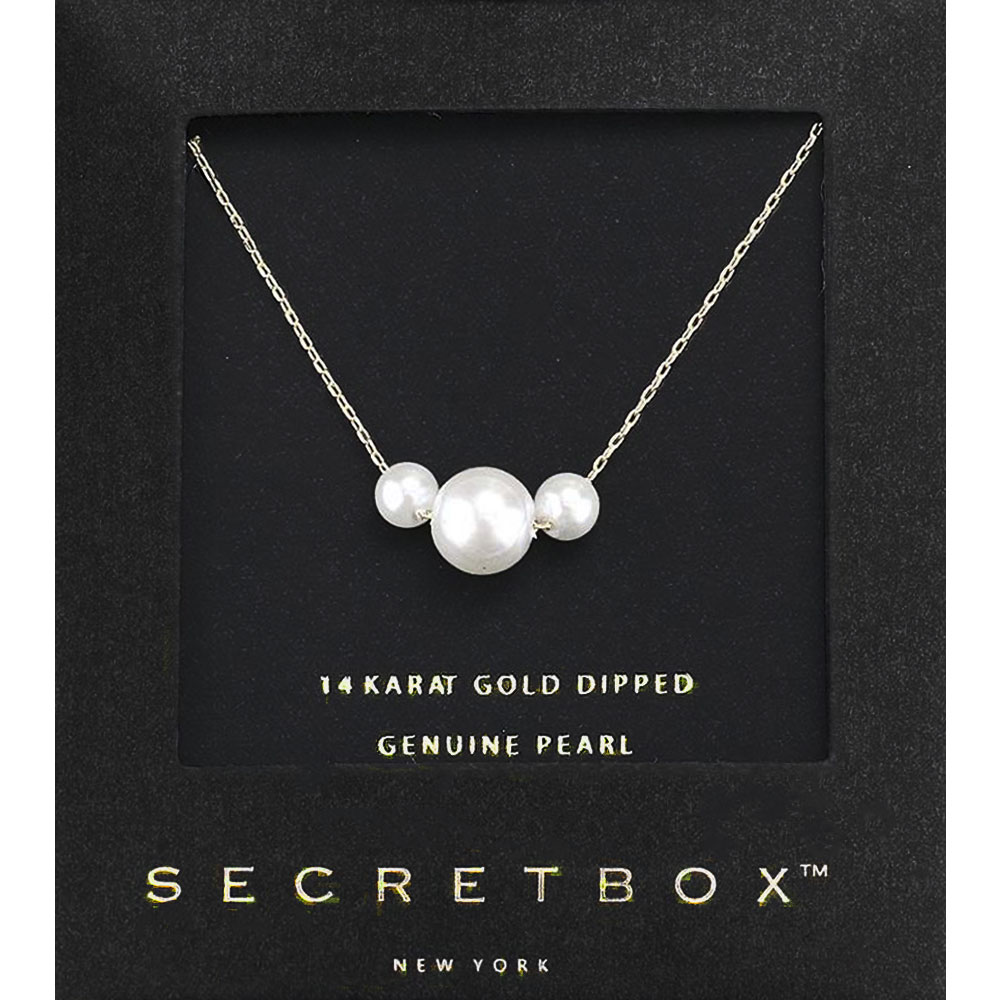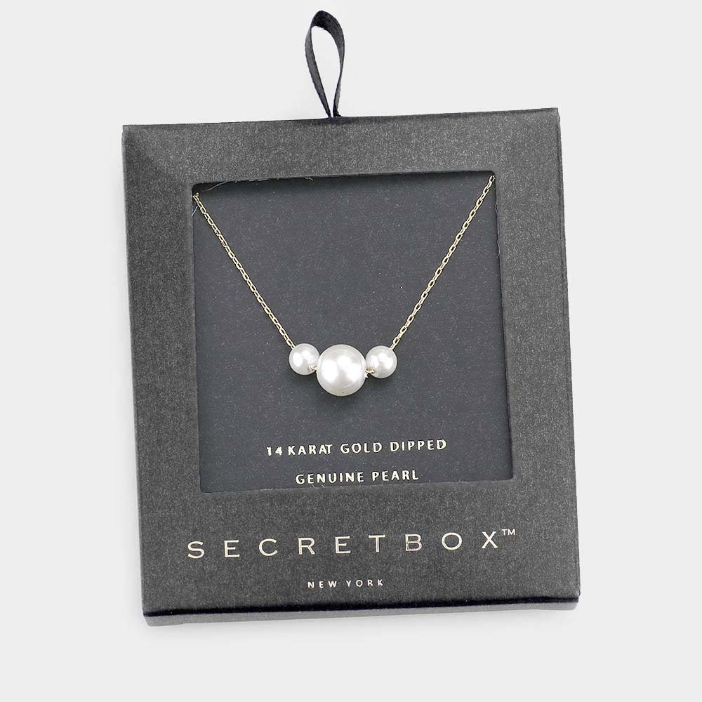 SECRET BOX_24K White Gold Dipped Triple Genuine Pearl Pendant Necklace