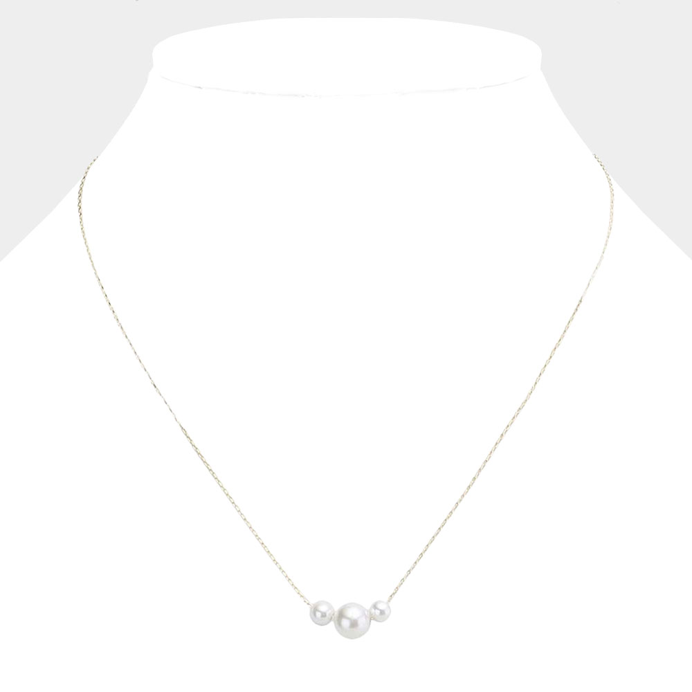 Details • Necklace Size : 16.5" + 2" L • Pendant Size : 0.6" X 0.3" • Elegant necklace featuring a trio of graduated pearls centered on a fine chain for a classic, minimalist look. A timeless accessory ideal for gifting, layering, or adding a refined touch to everyday and special occasion outfits. • Lead and Nickel Compliant • Gold Dipped