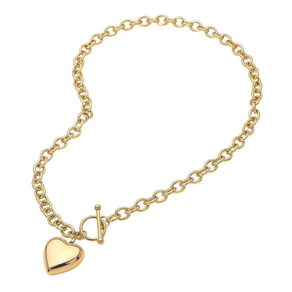 • Elevate any outfit with this elegant chain necklace featuring a sleek heart pendant and stylish toggle clasp. Its polished design adds a refined touch to everyday looks, special occasions, and layered accessories. A timeless piece that pairs effortlessly with modern or classic styles.