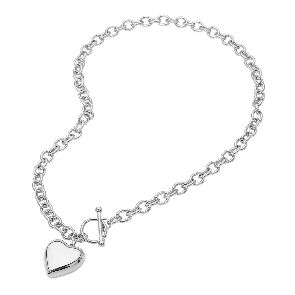Details • Necklace Size : 21" L • Pendant Size : 1" X 1" • Toggle Closure • Water Resistant • Elevate any outfit with this elegant chain necklace featuring a sleek heart pendant and stylish toggle clasp. Its polished design adds a refined touch to everyday looks, special occasions, and layered accessories. A timeless piece that pairs effortlessly with modern or classic styles. • Hypoallergenic • Stainless Steel