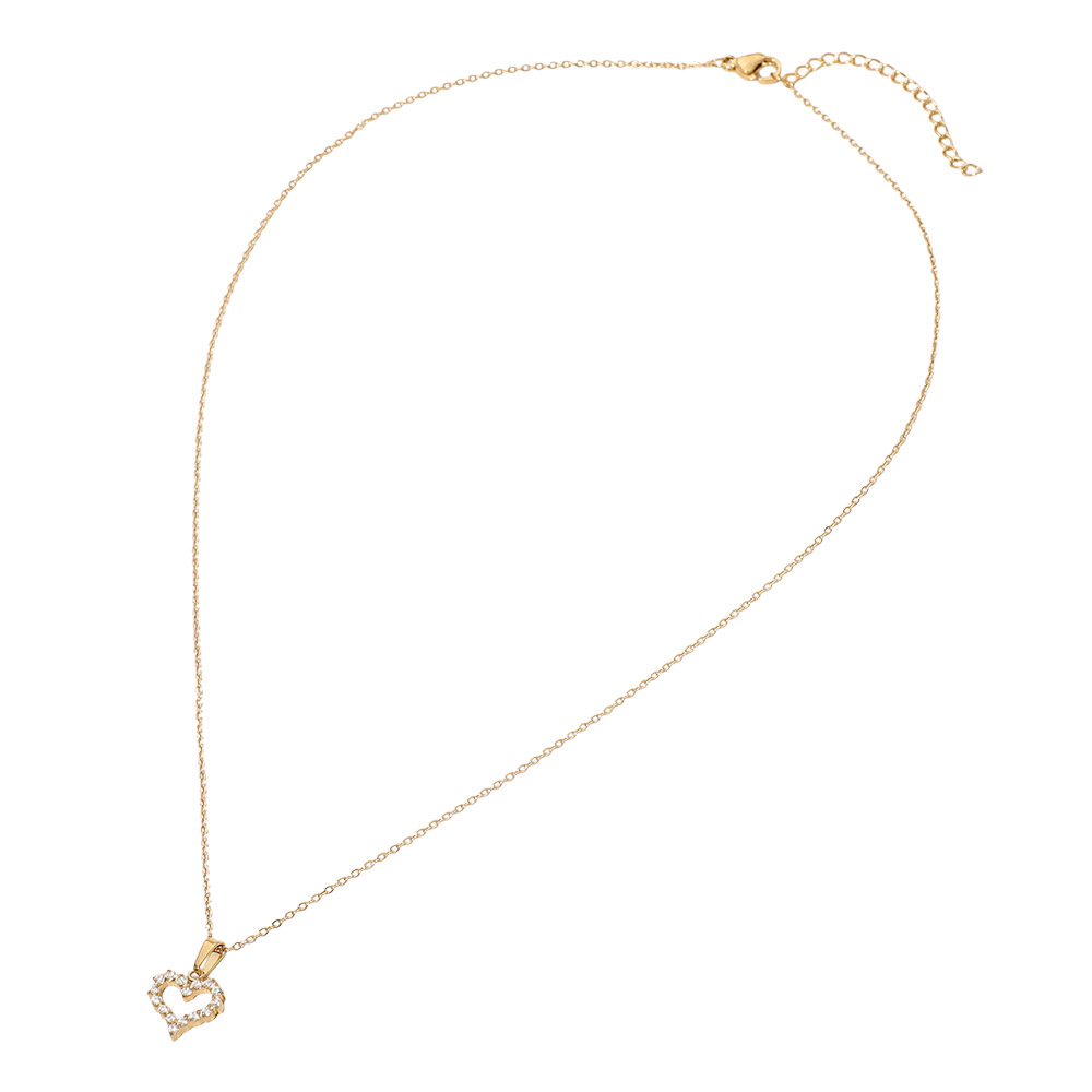 • Elegant open heart pendant necklace designed with subtle sparkle for a timeless, romantic look. This delicate necklace layers beautifully or stands alone as a meaningful everyday accessory, making it a versatile choice for boutiques seeking classic yet giftable jewelry styles.