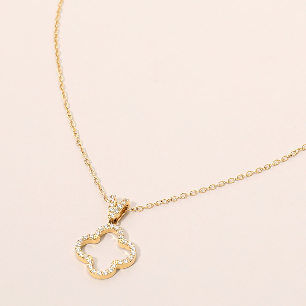 SECRET BOX_Stainless Steel Stone Paved Open Quatrefoil Pendant Necklace SECRET BOX_Stainless Steel Stone Paved Open Quatrefoil Pendant Necklace SECRET BOX_Stainless Steel Stone Paved Open Quatrefoil Pendant Necklace