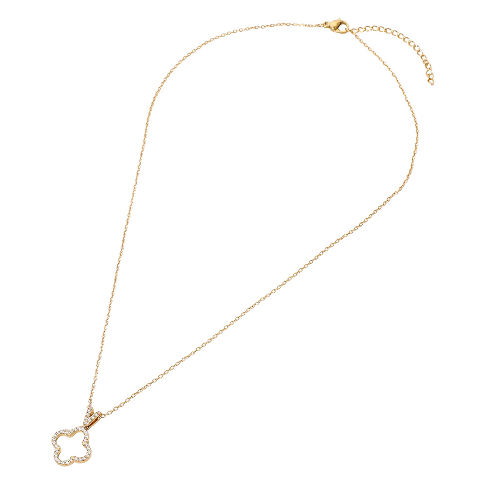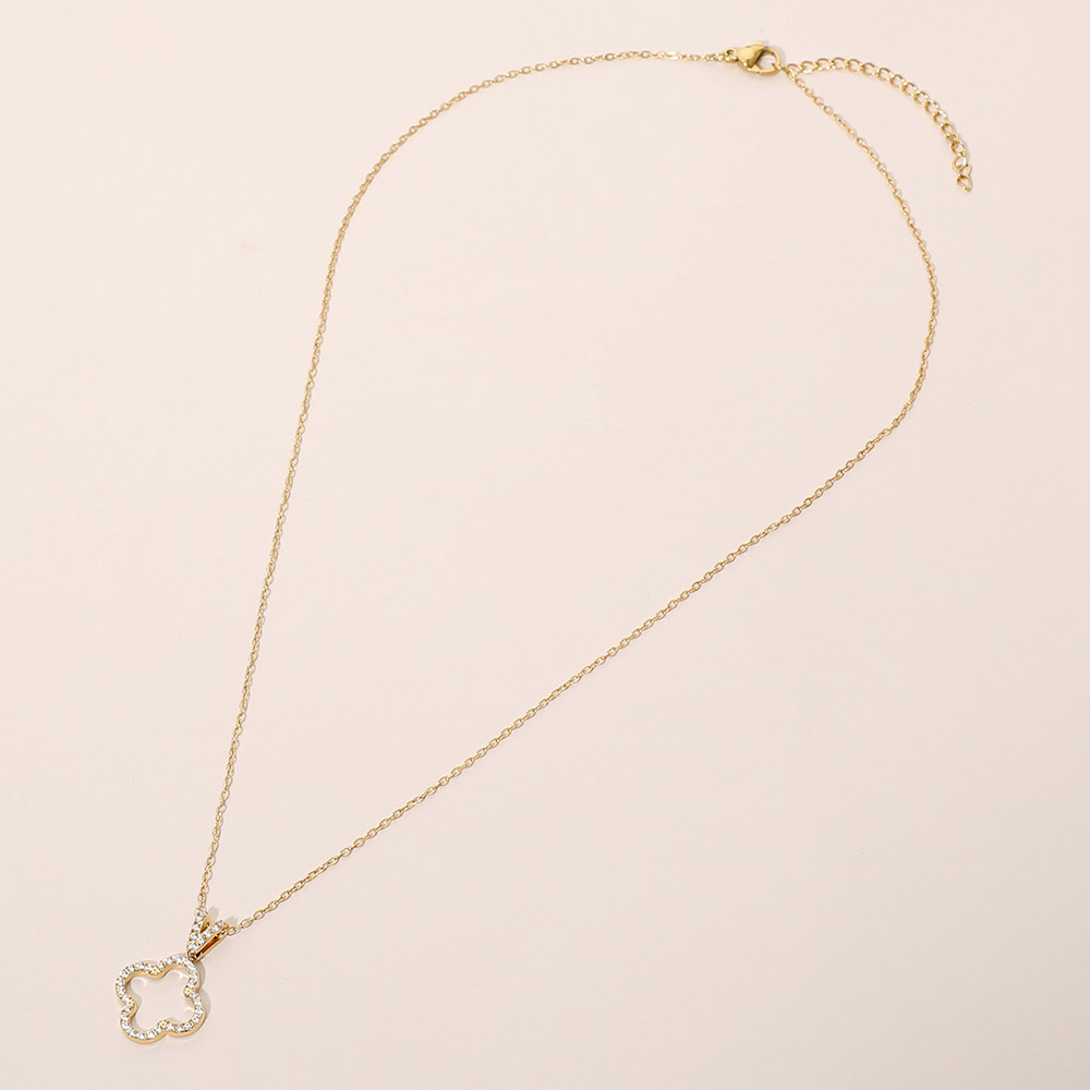 • Delicate quatrefoil outline pendant necklace designed with subtle sparkle for an elegant everyday look. This lightweight necklace layers effortlessly with other styles or shines on its own, making it a versatile, gift-ready accessory ideal for boutiques and trend-focused jewelry collections.