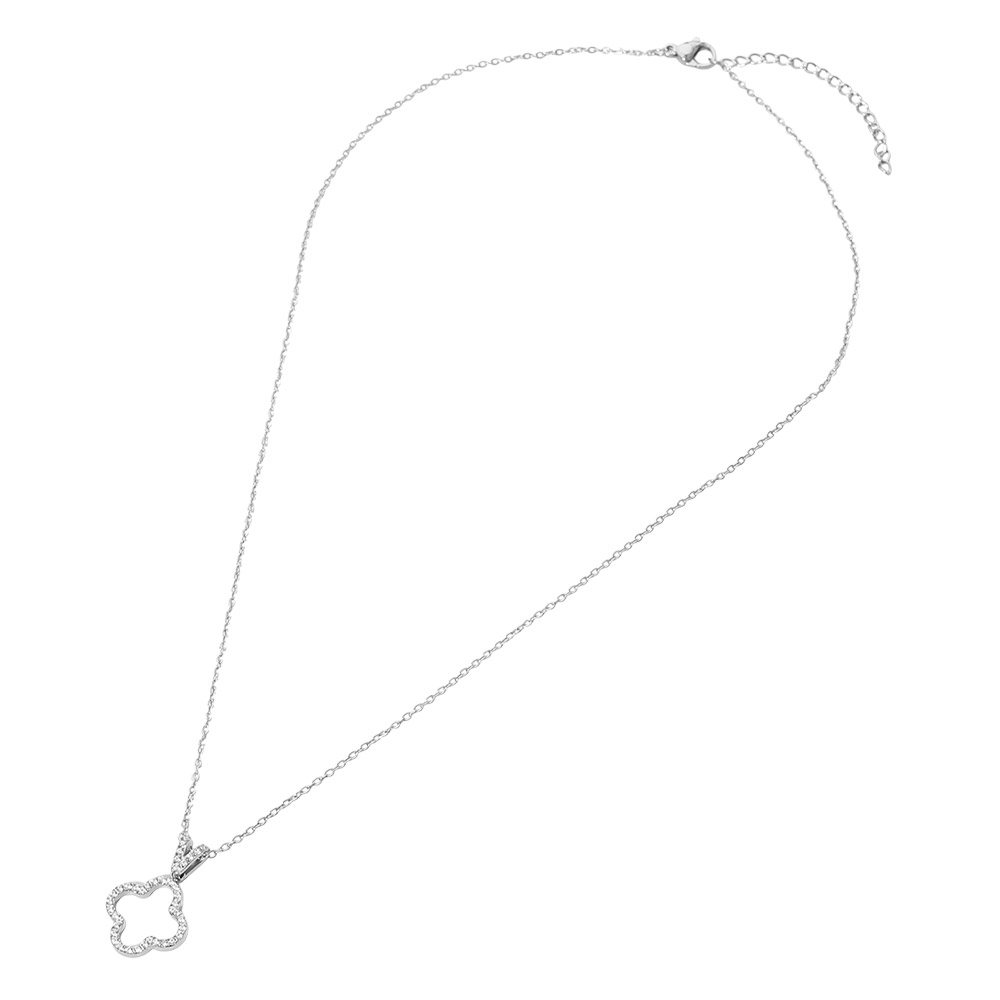 SECRET BOX_Stainless Steel Stone Paved Open Quatrefoil Pendant Necklace
