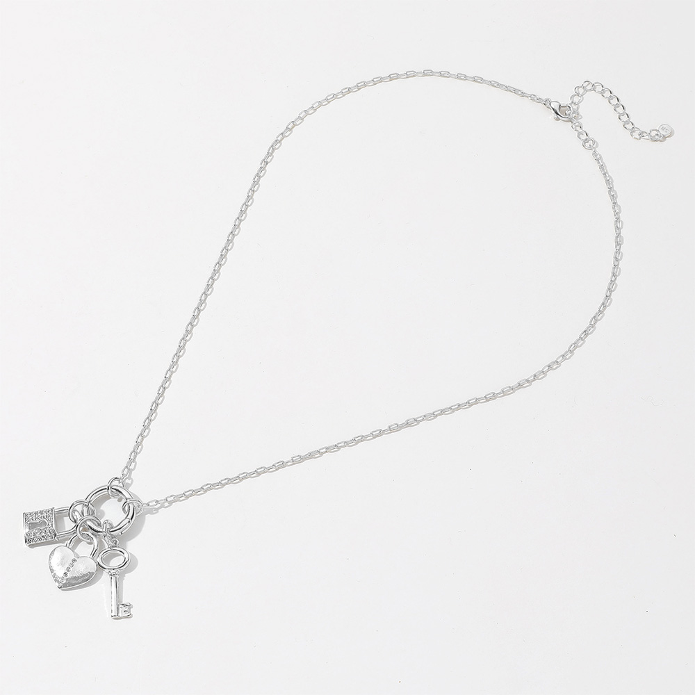 • A playful charm necklace featuring a heart, lock, and key trio that creates a meaningful, stylish statement. The mixed-shape pendants add visual interest, making this piece perfect for daily wear, gifting, or pairing with layered looks for added personality and charm.
