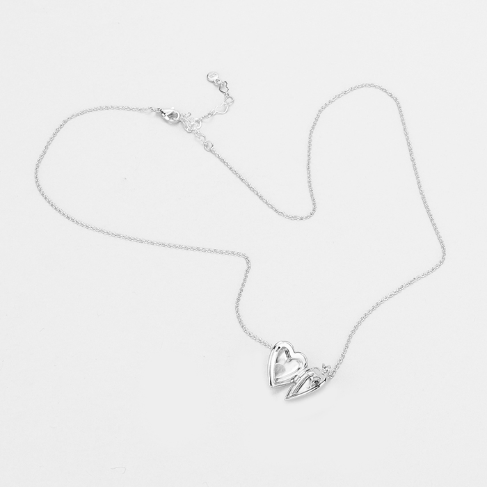 Secret Box_White Gold Dipped Heart Locket Pendant Necklace