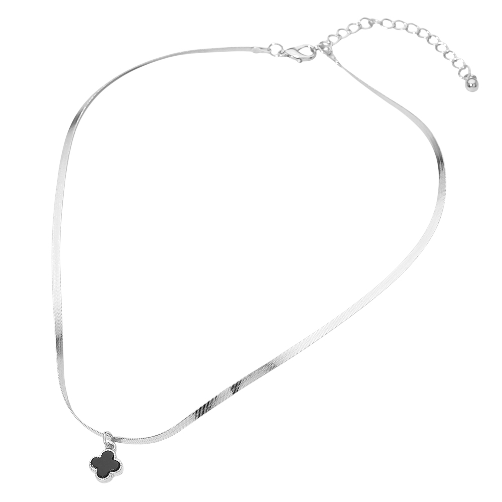 Silver Dipped Quatrefoil Pendant Herringbone Chain Necklace