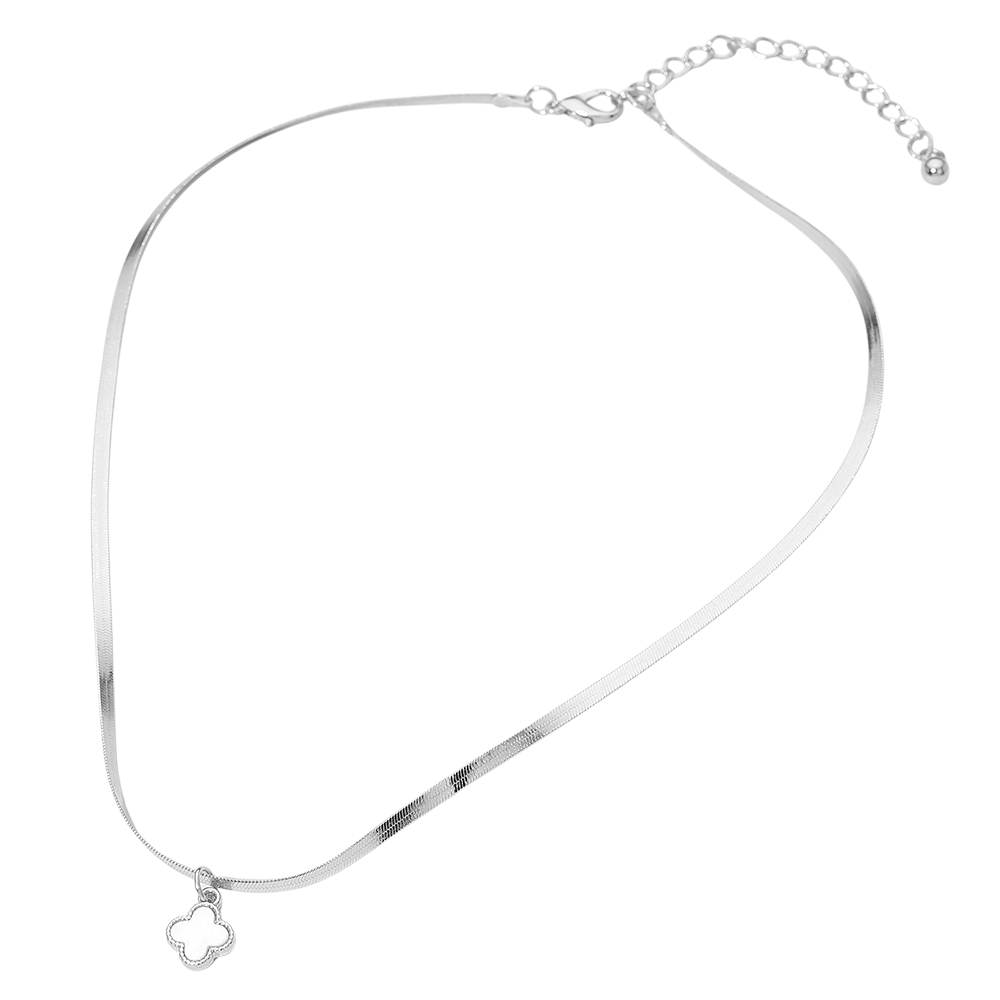 Silver Dipped Quatrefoil Pendant Herringbone Chain Necklace
