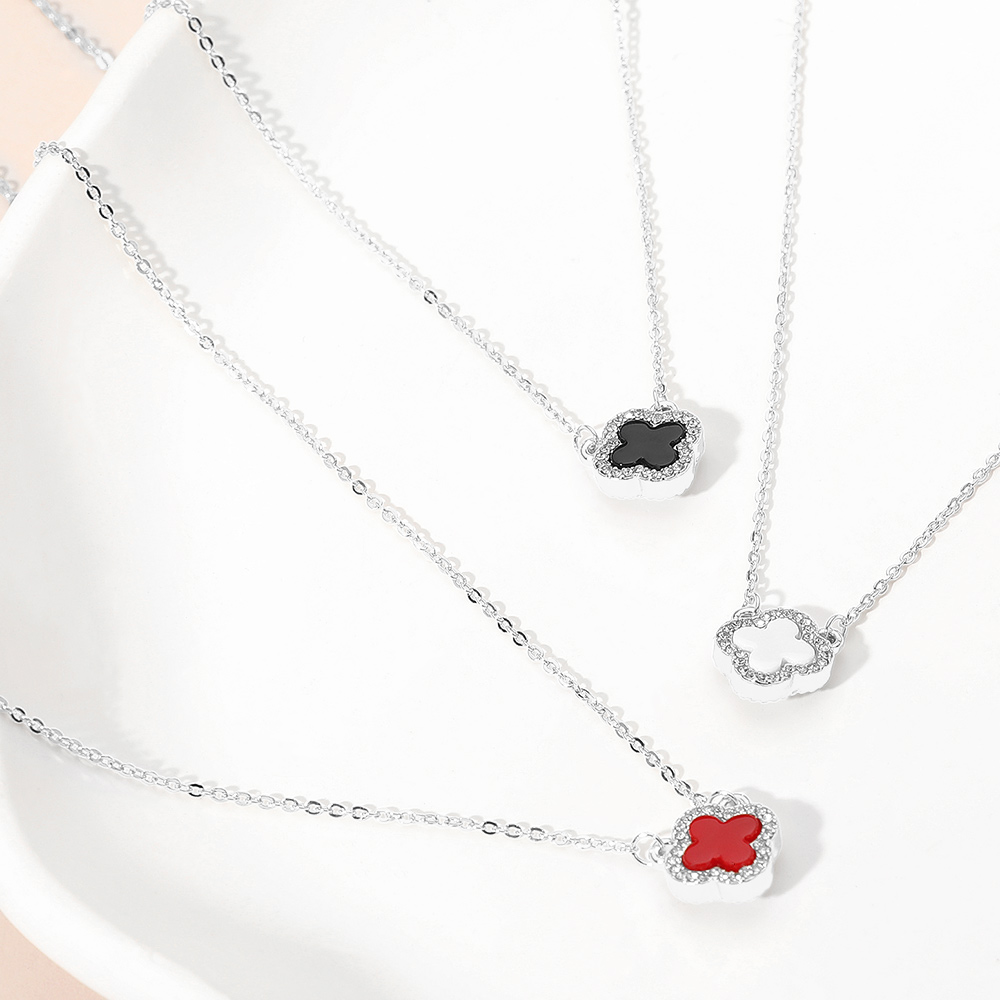 • This dainty quatrefoil charm pendant necklace showcases a single elegant motif framed by a shimmering border for a refined touch. Its minimalist design and adjustable chain make it perfect for layering or wearing solo, adding a hint of sophistication to both casual and dressy ensembles.