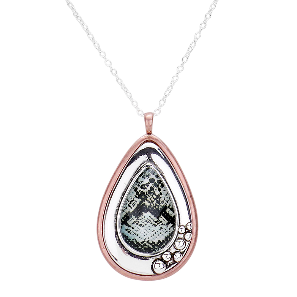 Snake Skin Print Centered Teardrop Metal Pendant Necklace