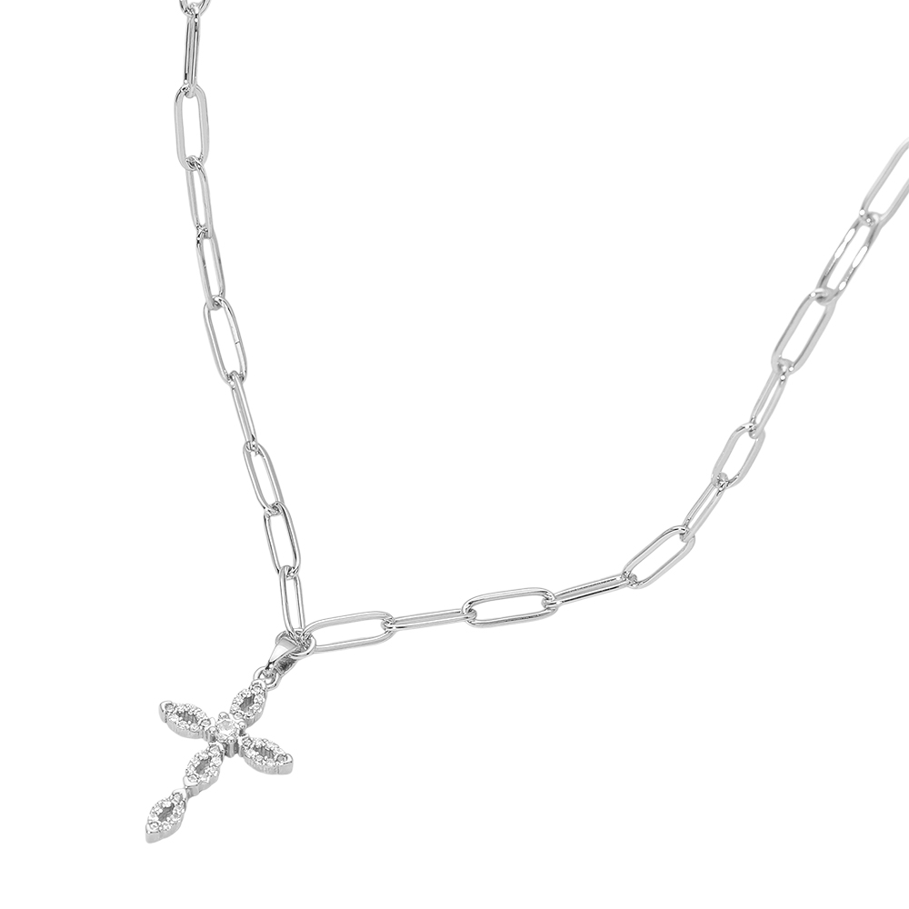 Stainless Steel CZ Cross Pendant Paperclip Chain Necklace Stainless Steel CZ Cross Pendant Paperclip Chain Necklace Stainless Steel CZ Cross Pendant Paperclip Chain Necklace