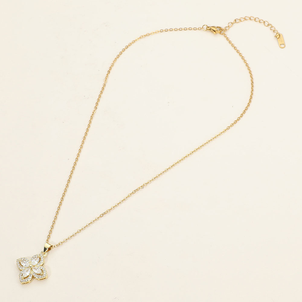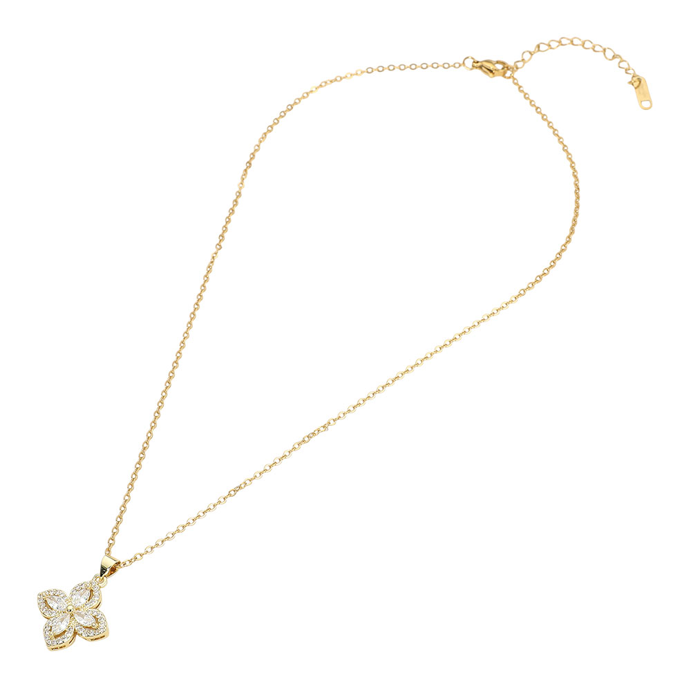 Details • Necklace Size : 15.5" + 2" L • Pendant Size : 0.75" X 1" • Elegant flower charm pendant necklace featuring a refined pave-style design with petal-inspired detailing. This timeless necklace offers a graceful balance of sparkle and softness, perfect for everyday styling or special occasions. Ideal for boutiques seeking feminine, giftable jewelry that layers beautifully or stands out as a delicate statement piece. • CZ Cubic Zirconia • Stainless Steel