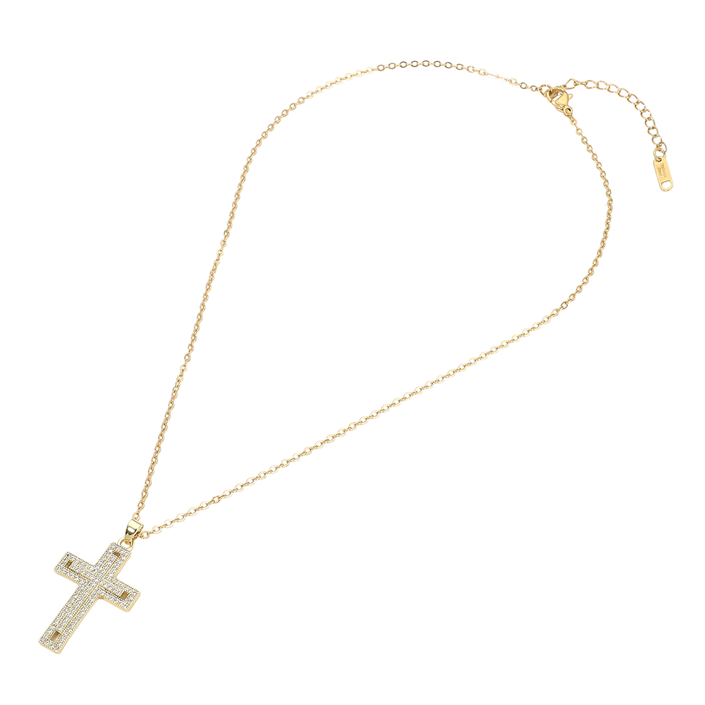 Stainless Steel CZ Stone Paved Cross Pendant Necklace Stainless Steel CZ Stone Paved Cross Pendant Necklace Stainless Steel CZ Stone Paved Cross Pendant Necklace