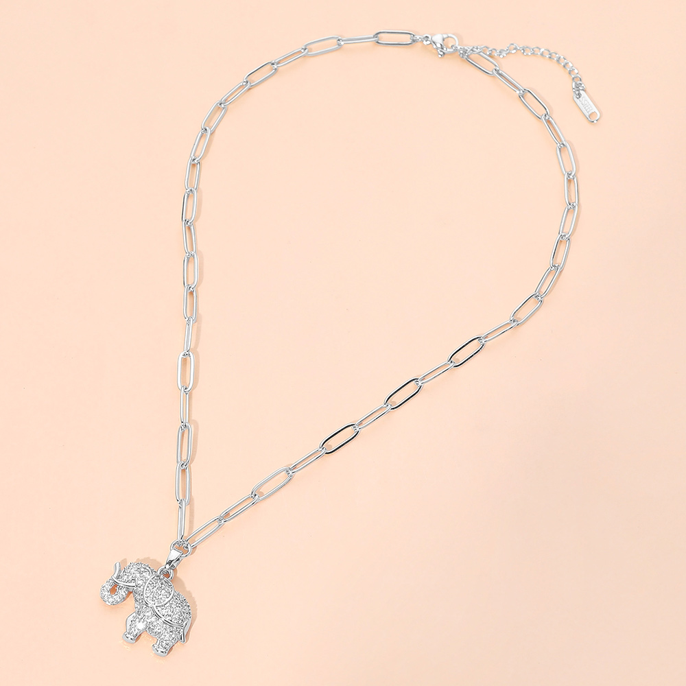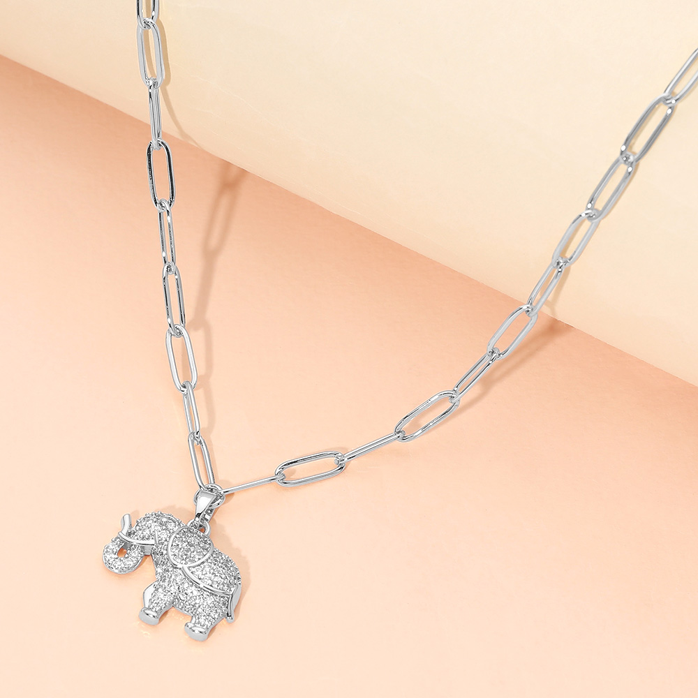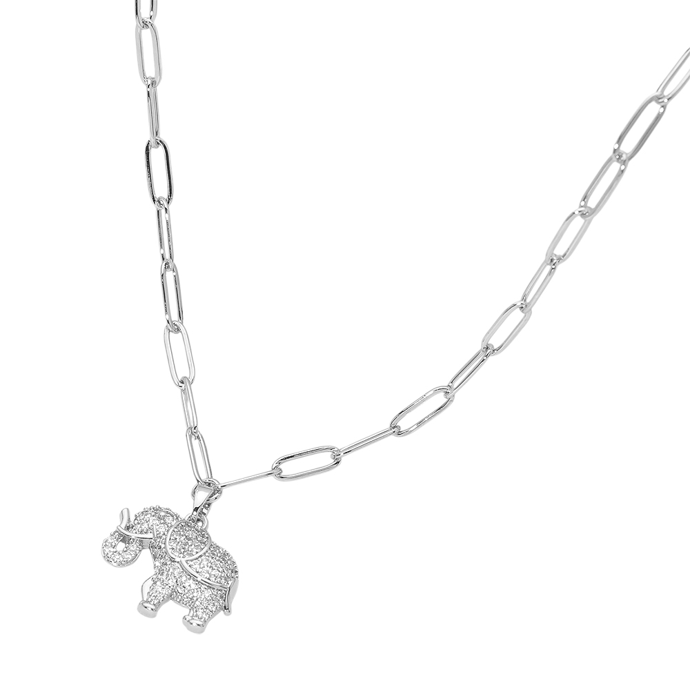 Stainless Steel CZ Stone Paved Elephant Charm Pendant Paperclip Chain Necklace Stainless Steel CZ Stone Paved Elephant Charm Pendant Paperclip Chain Necklace Stainless Steel CZ Stone Paved Elephant Charm Pendant Paperclip Chain Necklace