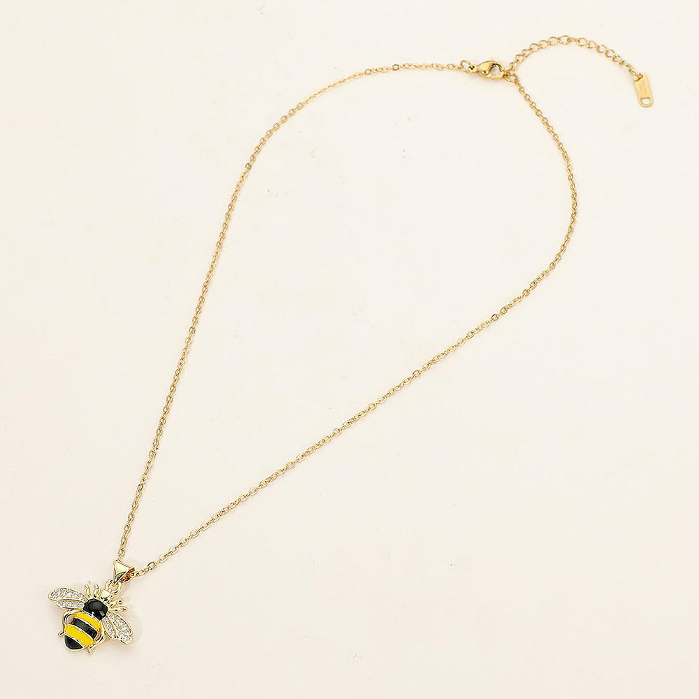Stainless Steel CZ Stone Paved Enamel Honey Bee Pendant Necklace Stainless Steel CZ Stone Paved Enamel Honey Bee Pendant Necklace Stainless Steel CZ Stone Paved Enamel Honey Bee Pendant Necklace