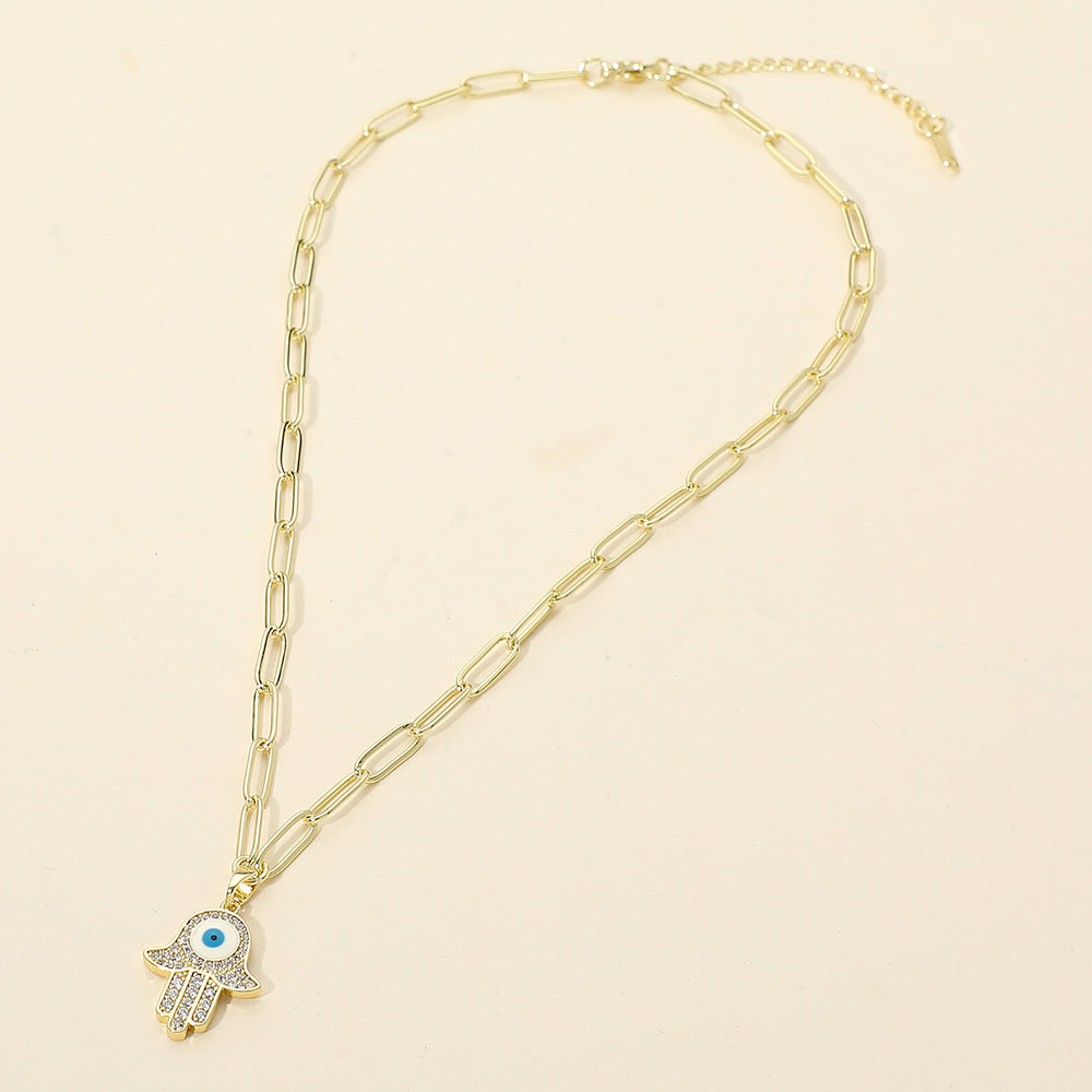 • Symbolic hamsa charm necklace featuring an evil eye design that represents protection, positivity, and good fortune. Designed for everyday wear or meaningful gifting, this necklace offers a balanced blend of spiritual symbolism and modern style. Easy to layer or wear solo, it’s a versatile accessory for boutiques seeking trend-driven jewelry with lasting appeal.